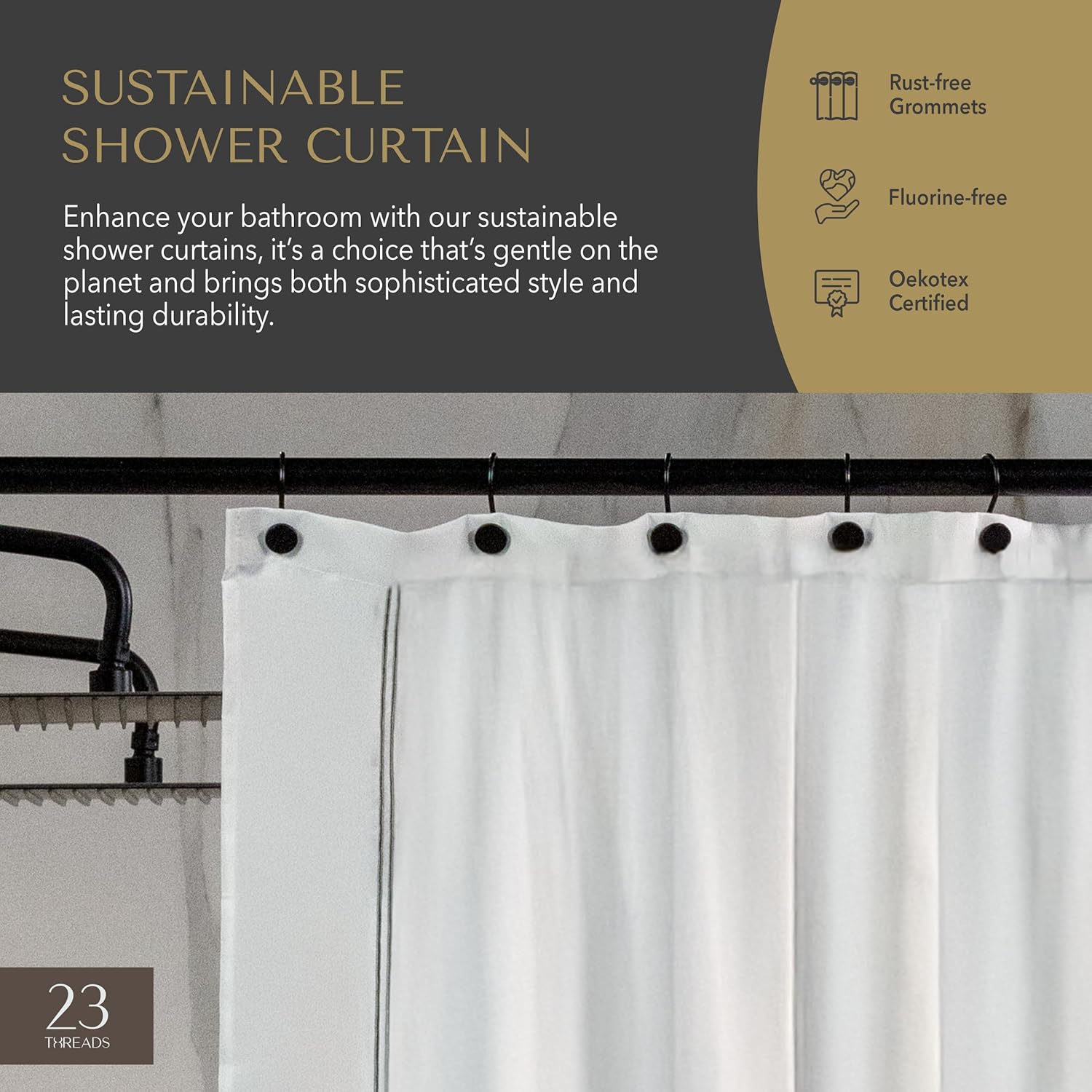 23 THREADS Fabric Shower Curtain for Bathroom, Water Resistant, Made from Sustainable Yarns, White, Luxury Embroidered