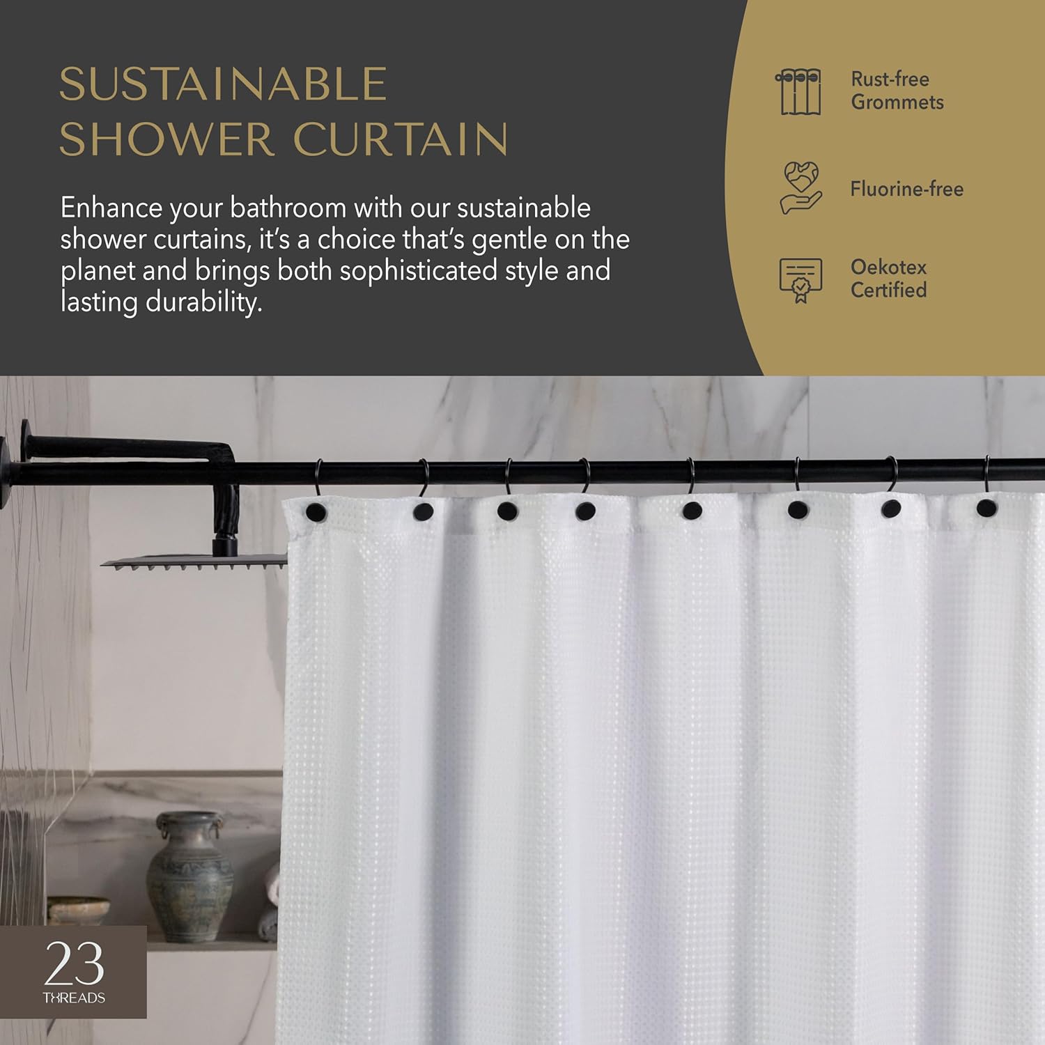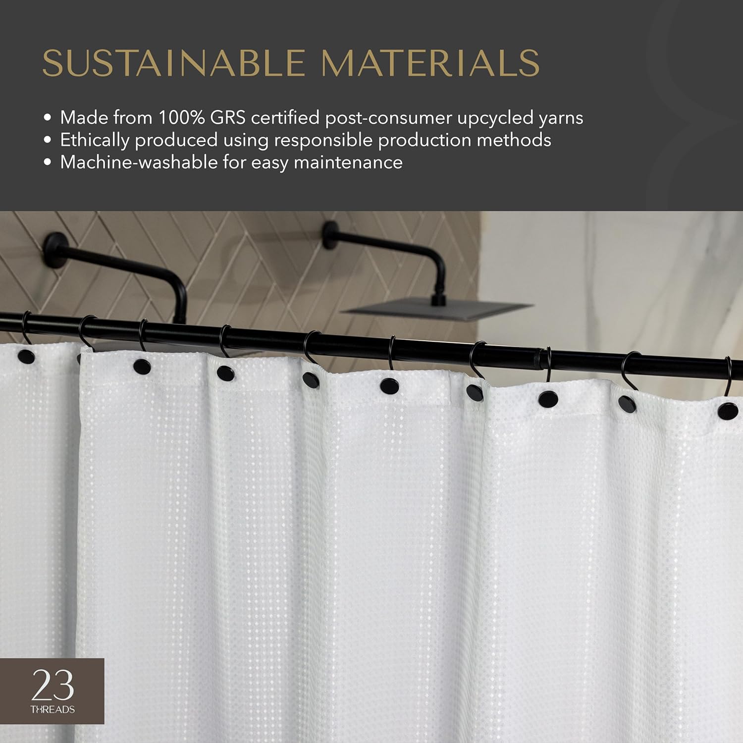 23 THREADS Fabric Shower Curtain for Bathroom, Water Resistant, Made from Sustainable Yarns, White, Waffle Weave
