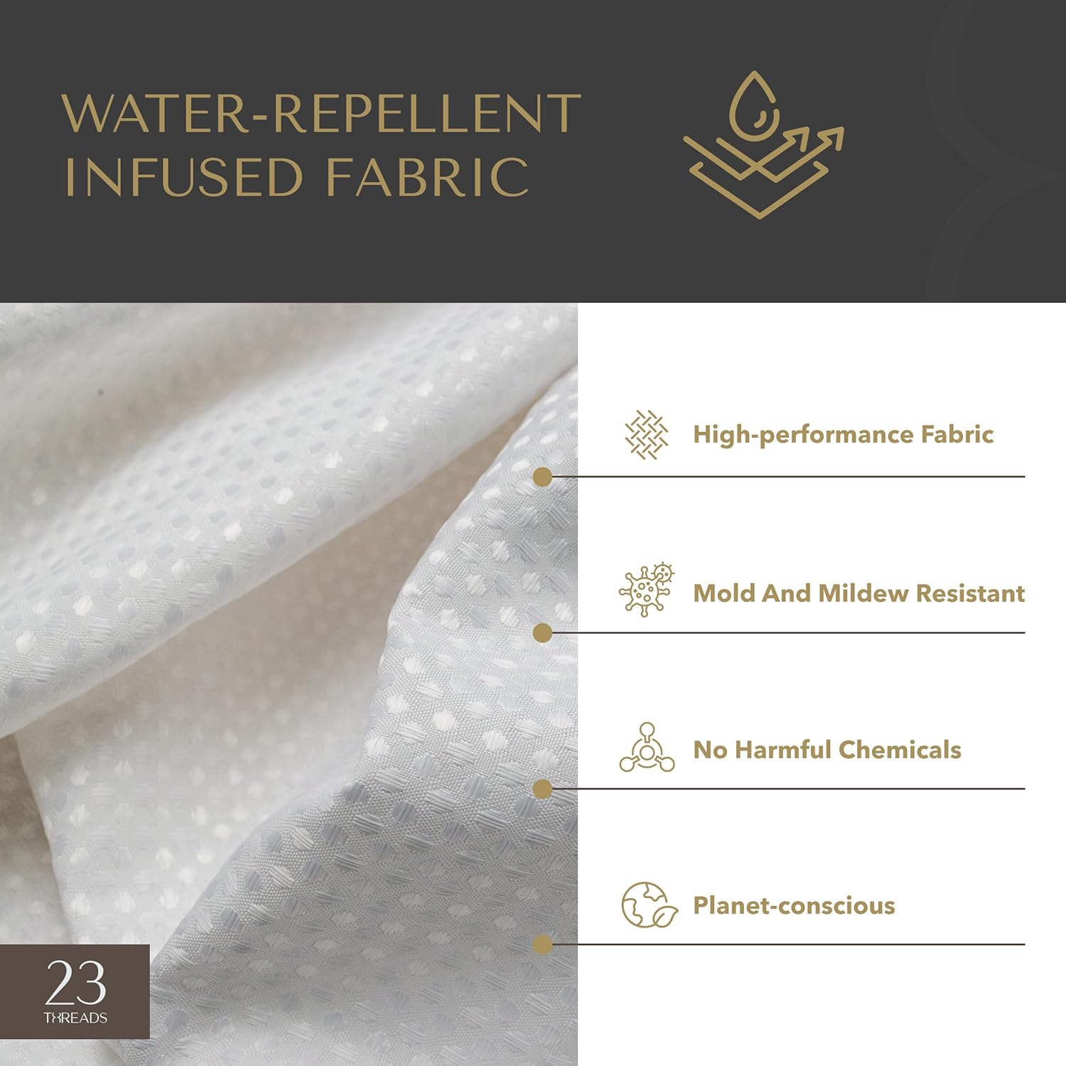 - WATER-REPELLENT INFUSED FABRIC: This heavy-duty shower curtain is made from a high-performance, water-repellent fabric; plus, it's free from harmful chemicals like fluorine