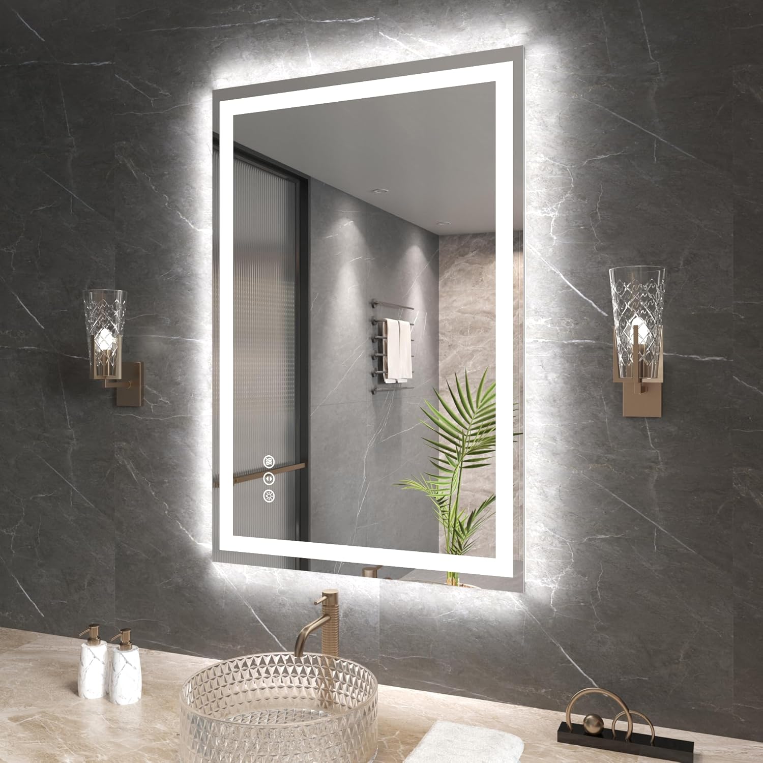 24"X36" LED Bathroom Mirror with Front Lights and Backlit, Anti-Fog, Dimmable, Shatter-Proof Tempered Glass, Lighted Bathroom Vanity Mirror for Wall with 3 Colors, Memory Function