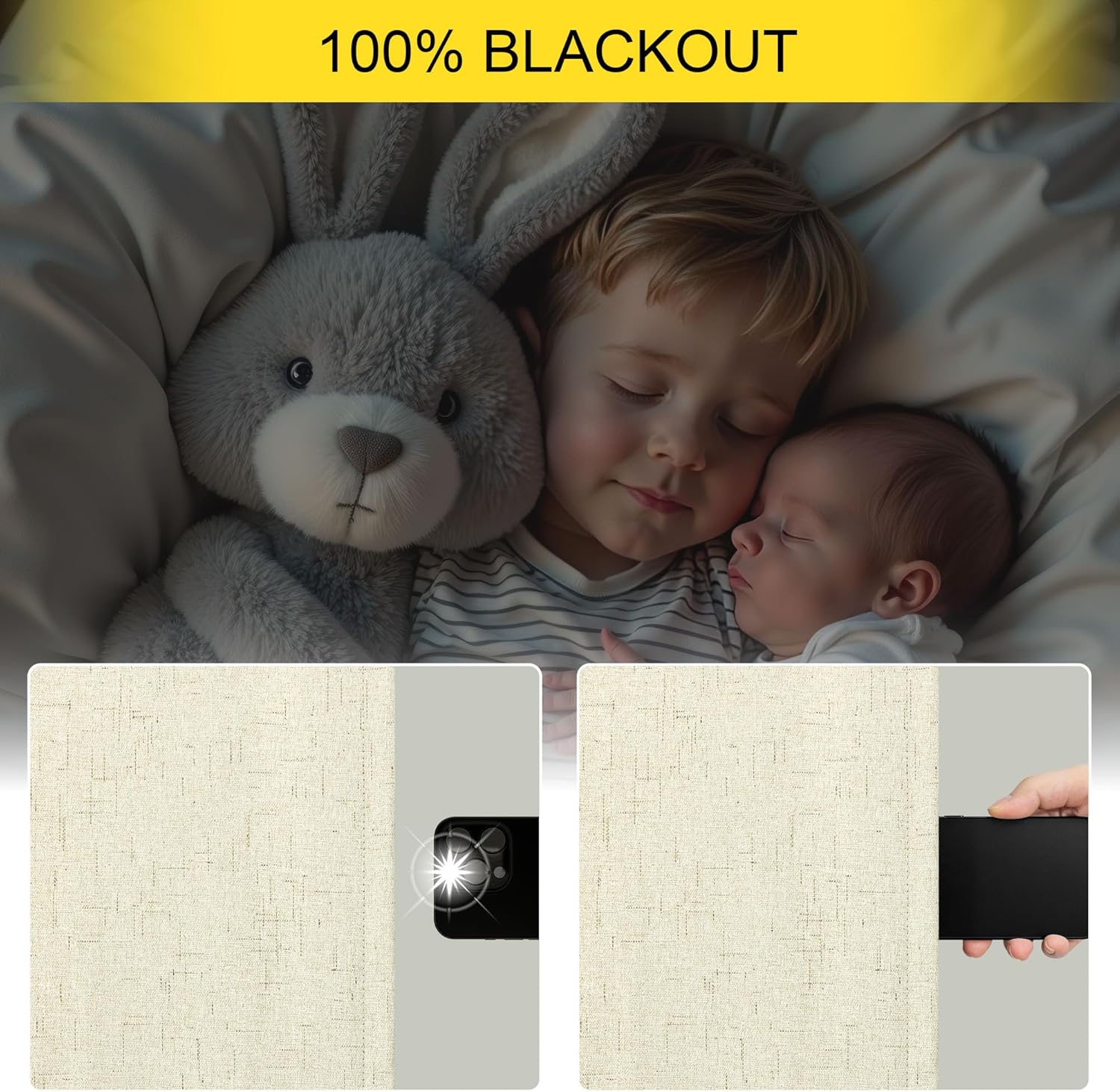 102 Inch Long Curtains for Bedroom Living Room Darkening Blackout Thermal Thick Linen Textured Luxury Curtain Drape for Sliding Glass Patio Door Set of 2 Panel 102 In Length Back Tab Ivory Cream Beige