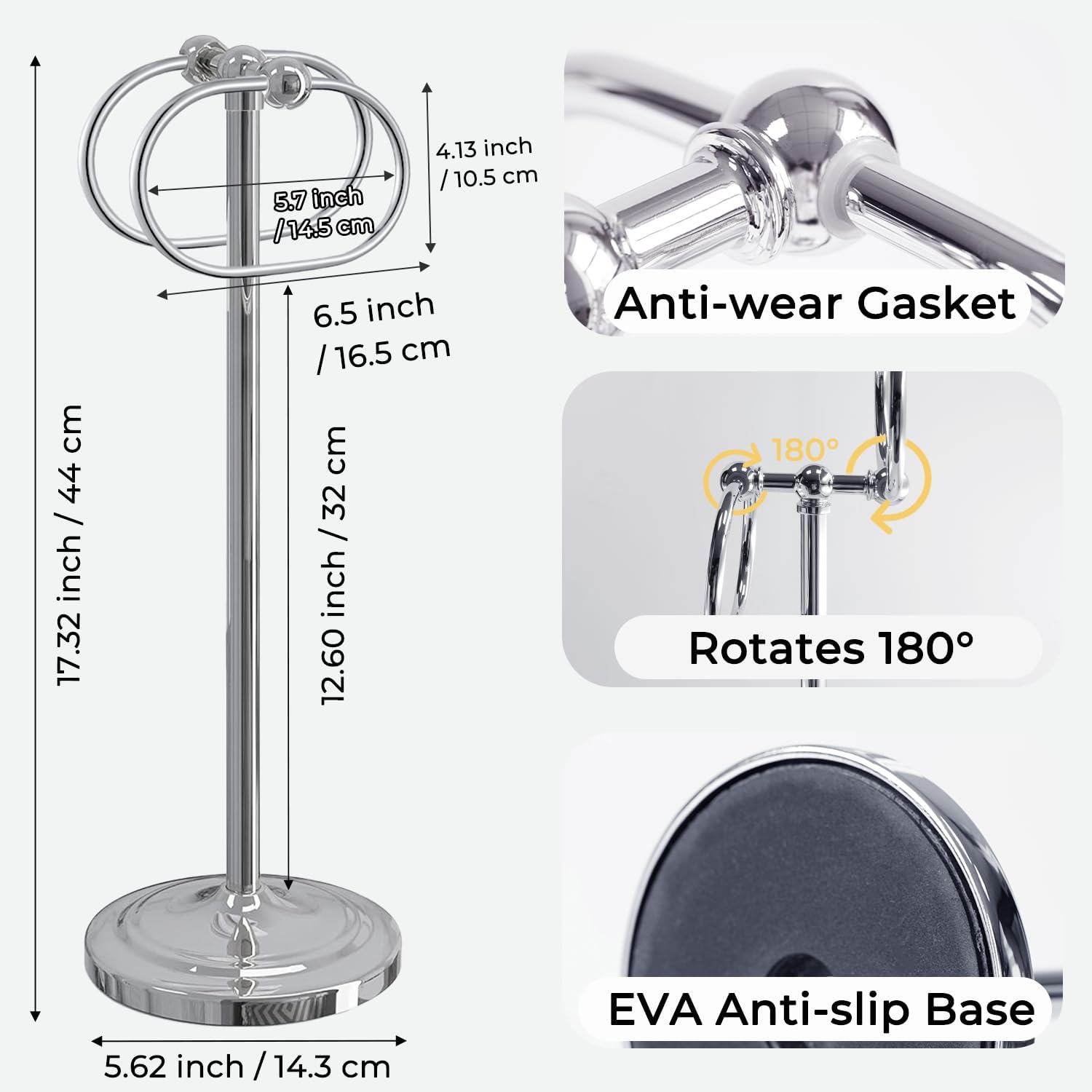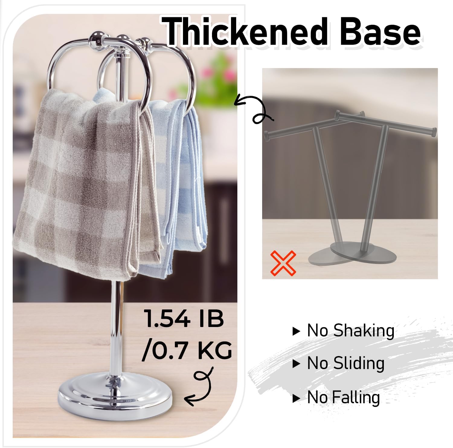 17 Inch Stainless Steel Hand Towel Holder Double Stand Hand Towel Ring for Washcloths or dishcloths Non-Slip Base Free Standing Towel Rack for Bathroom Kitchen (Chrome)