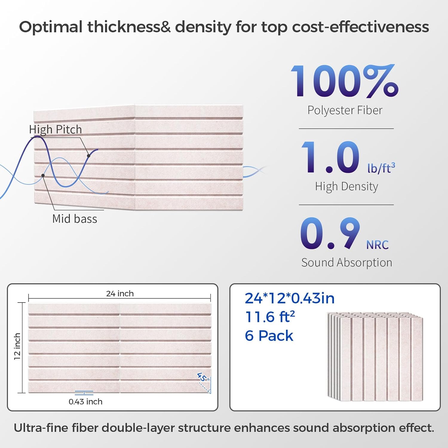 6 Pack Large Soundproof Wall Panels, 24 x 12 x 0.47 in Sound Proof Foam Panels for Walls, 1.2lb/ft³ High Density, Thicker 0.47in, Acoustic Panels, Sound Dampening Panels Camel