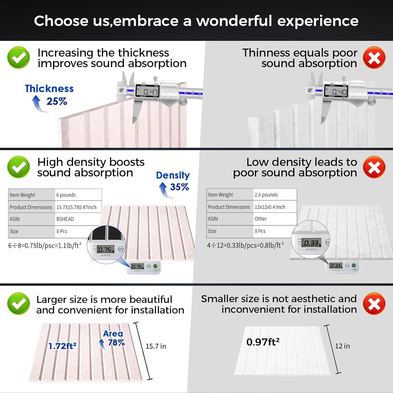 - 【Excellent Quality】: This sound panels is made of high-quality 100% polyester, odorless and flame retardant. There are no risks associated with spending long periods of time in a room with soundproof wall panels. And compared with traditional sound panels noise reducing for walls, our products have higher thickness (25% thicker) and density (35% denser)larger in size(200% area),which means better durability and sound absorption