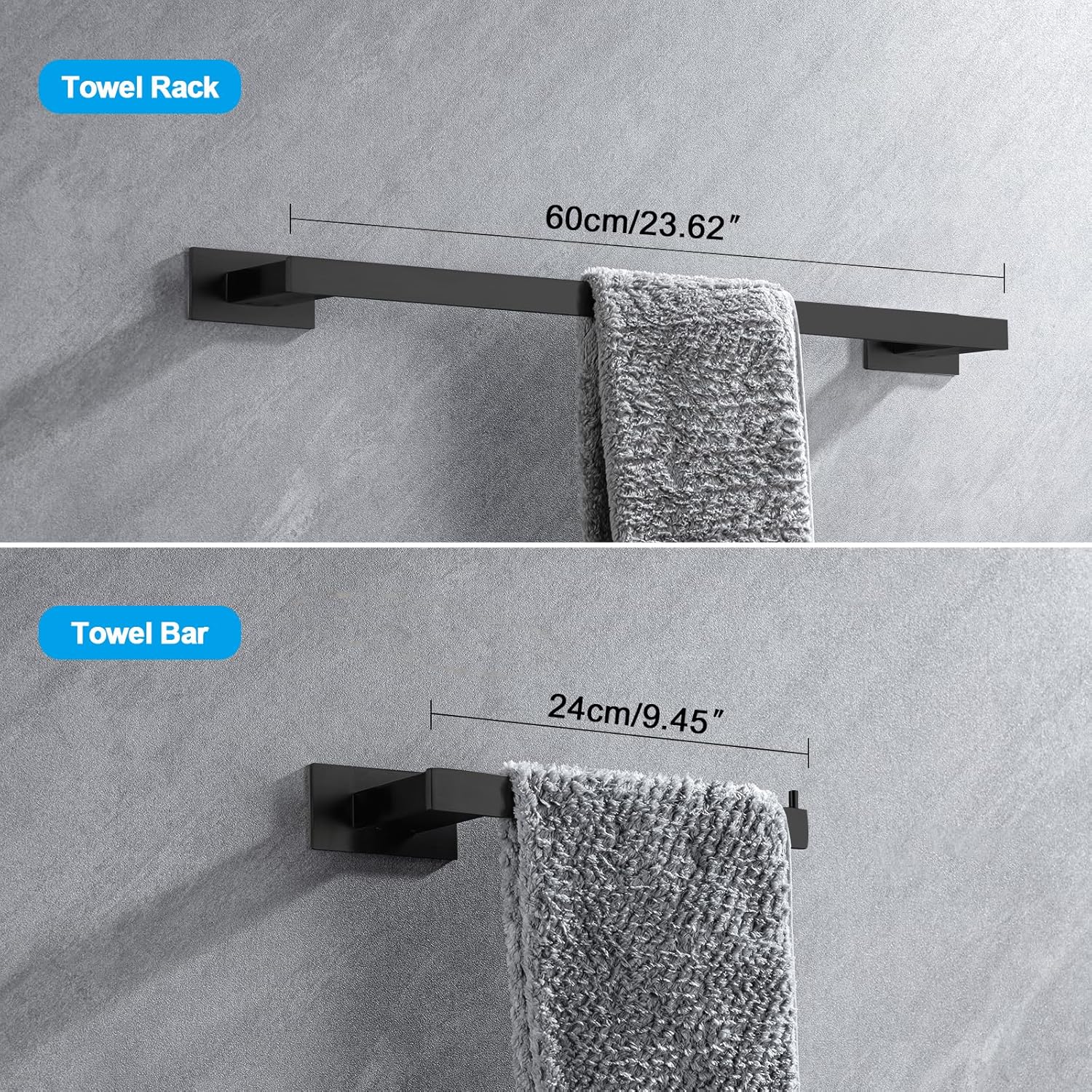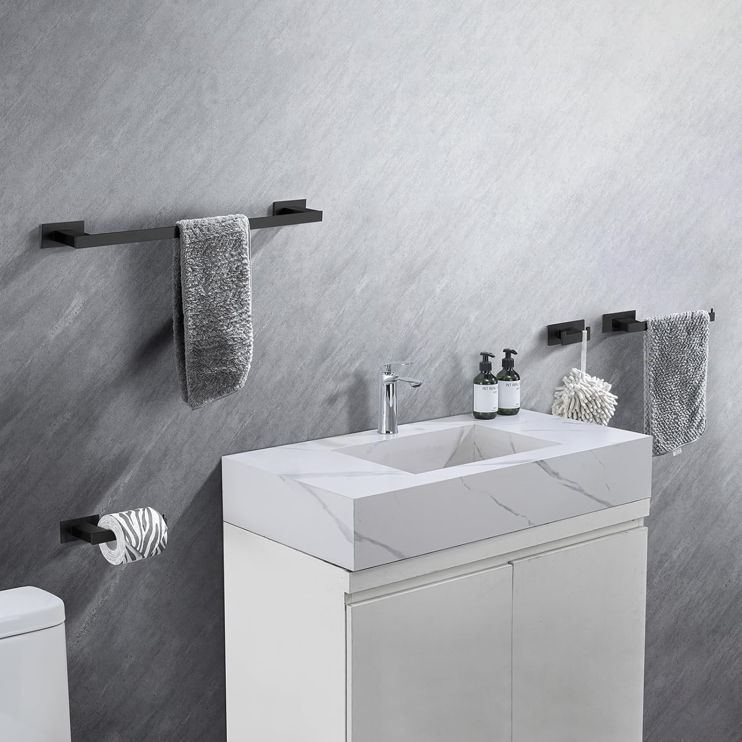 - Wide Range of Applications - 1 towel bar, 1 towel holder, 1 towel hook, 1 toilet paper holder can be installed in any position as needed, suitable for bathroom, toilet, kitchen, living room, bedroom, balcony, etc.