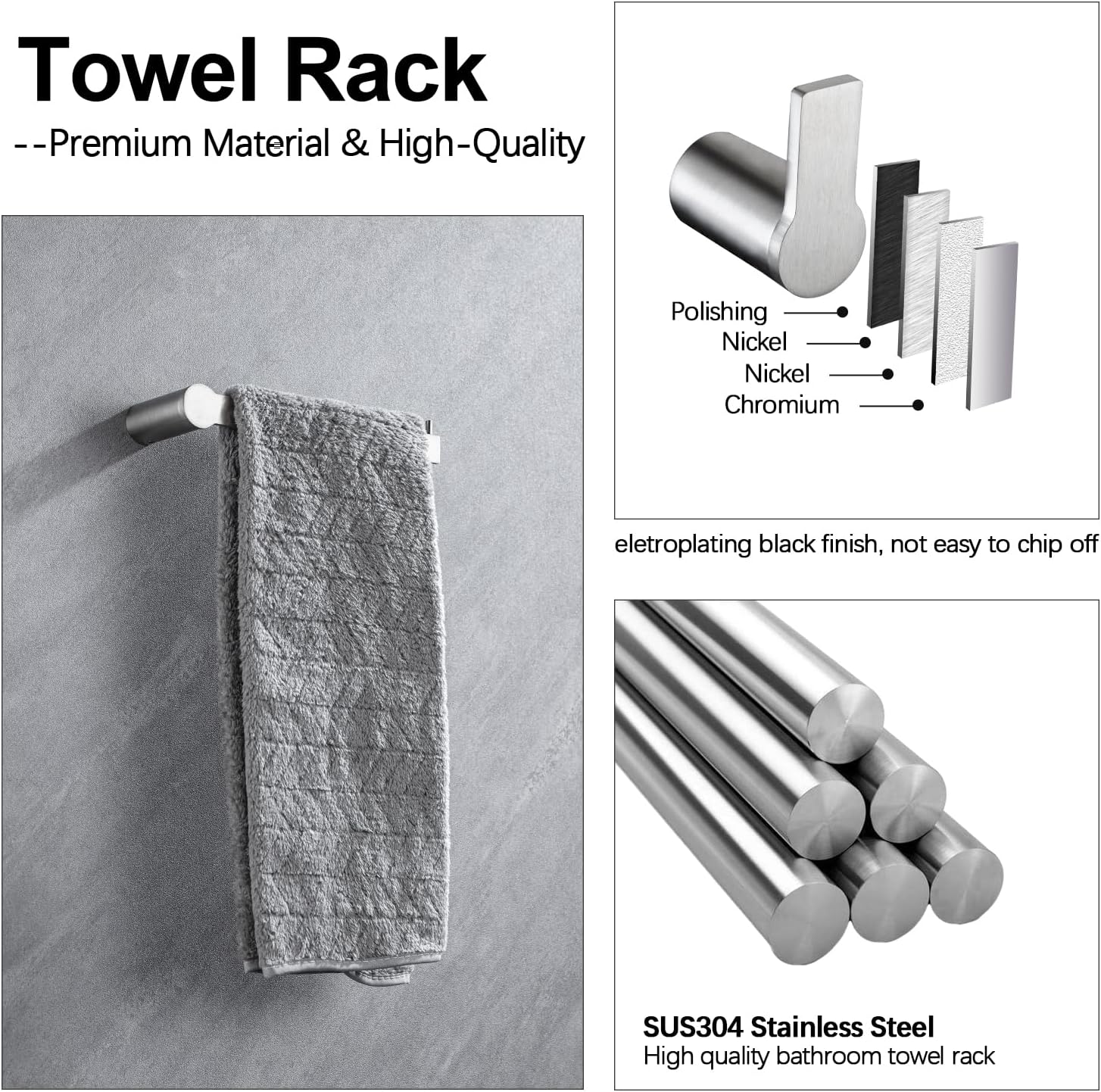 - [ Excellent Quality Towel Rack Set ]--The bathroom hardware set is made of long-lasting and wear-resistant stainless steel, ensuring long-term reliability. Easy maintenance, high-quality materials and high quality ensure long-term service.