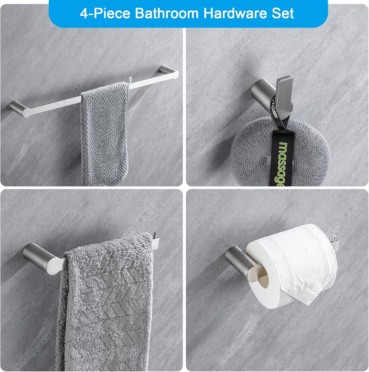 4-Pieces Bathroom Accessories Set, Towel Bar Set Modern Stainless Steel Towel Rack Towel Hooks Toilet Paper Holder for Bathroom Wall Mounted, Brushed Nickel 23 Inch
