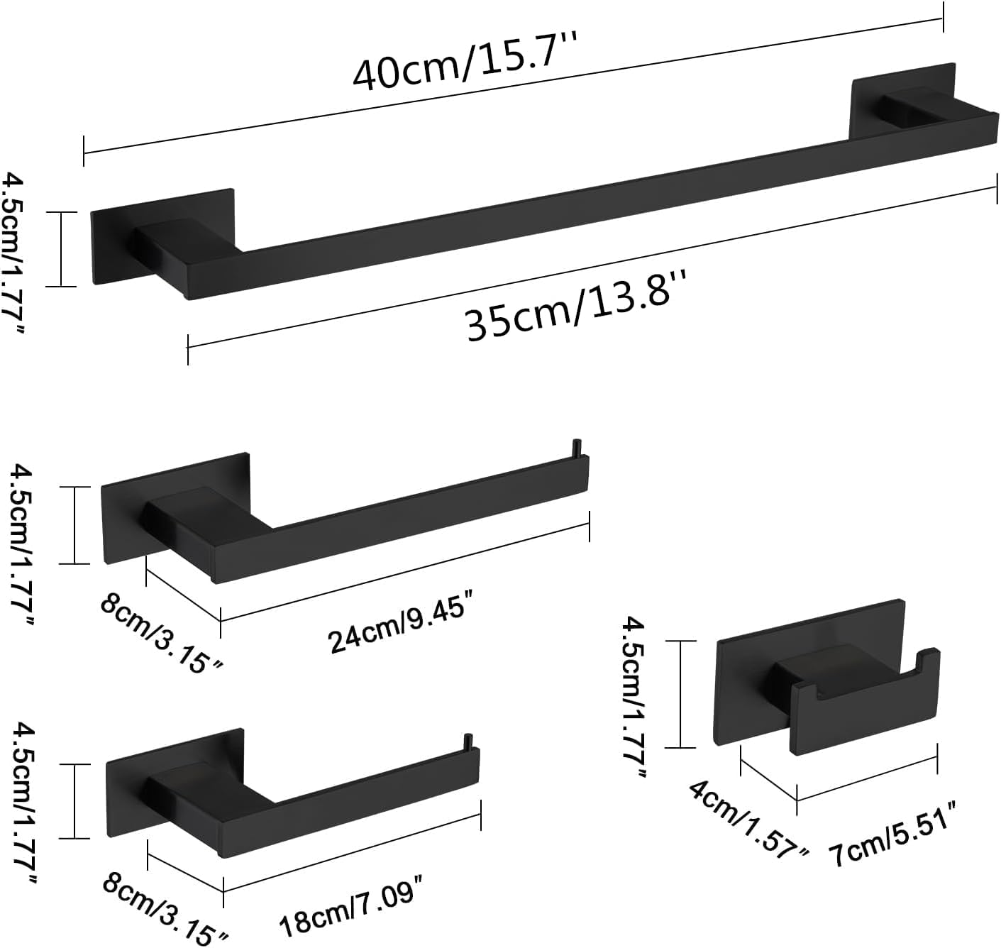 - Wide Range of Applications - 1 towel bar, 1 towel holder, 1 towel hook, 1 toilet paper holder can be installed in any position as needed, suitable for bathroom, toilet, kitchen, living room, bedroom, balcony, etc.