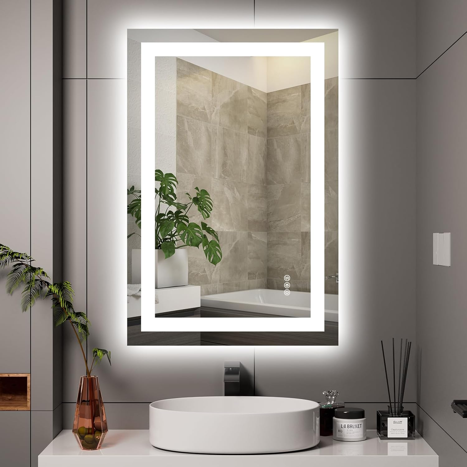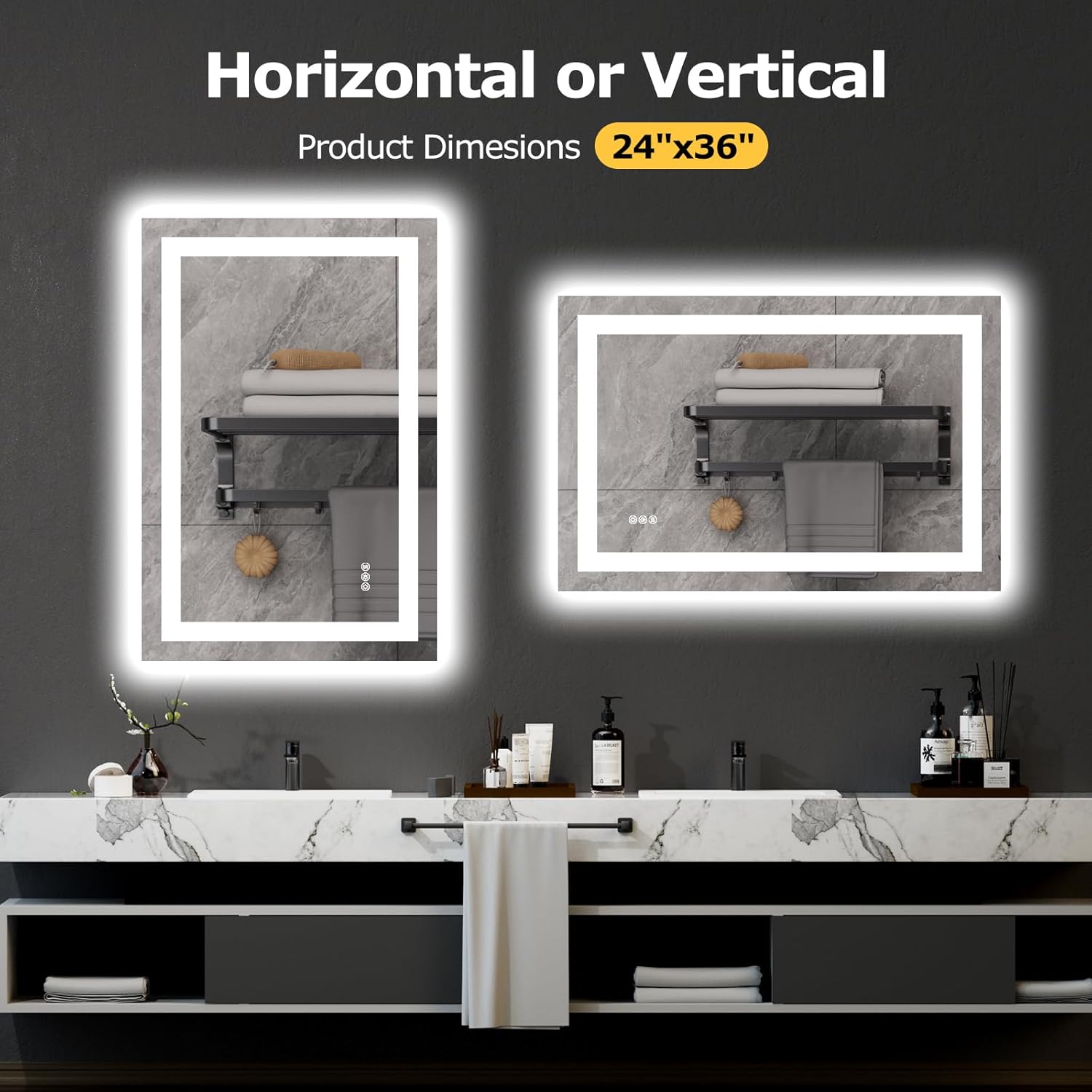 24X36 LED Bathroom Mirror with Lights, Anti-Fog, Dimmable, Backlit + Front Lit, Smart Bathroom Vanity Mirror, Memory Function, Shatterproof, Tempered Glass (Horizontal/Vertical)