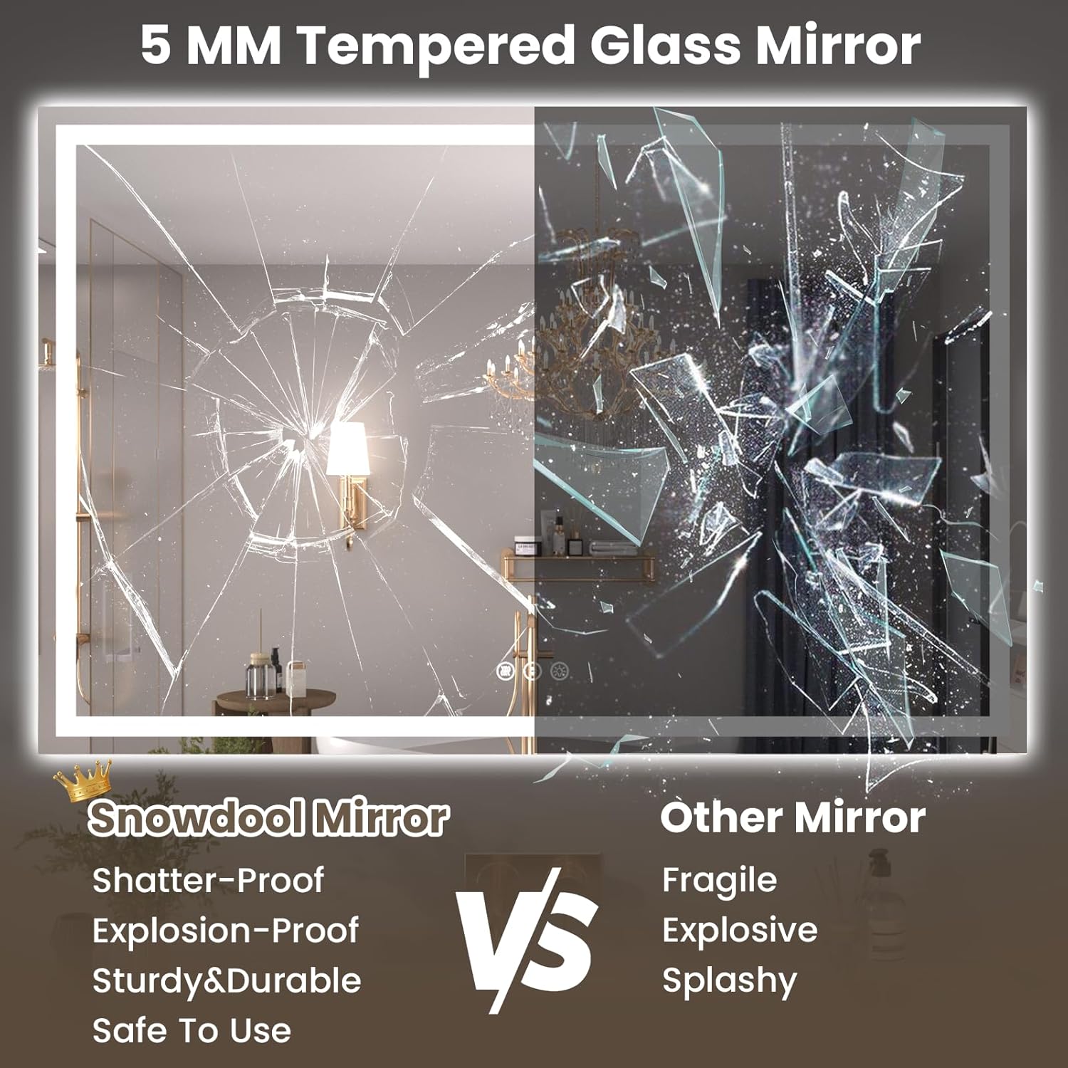 - [Backlit + Front Lit, Perfect Lighting]: Snowdool led mirror is featured both backlight and front light for superior brightness and even illumination. Ideal for makeup application, skincare routines, shaving, and styling with zero shadow or dark spot