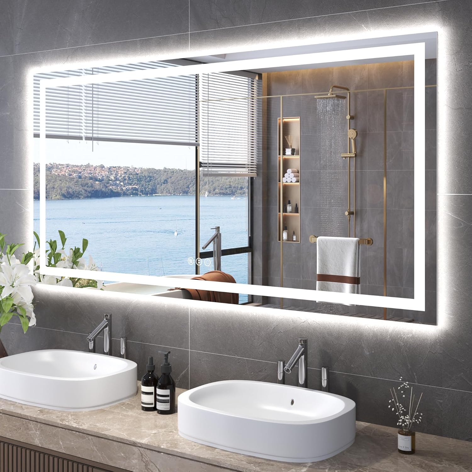 - [Flexible Installation Options]: The lighted bathroom mirrors for wall Choose between plug-in or hardwired power supply. Includes Z-bar mounting system for secure installation (vertical or horizontal).Low-maintenance design - wipes clean effortlessly