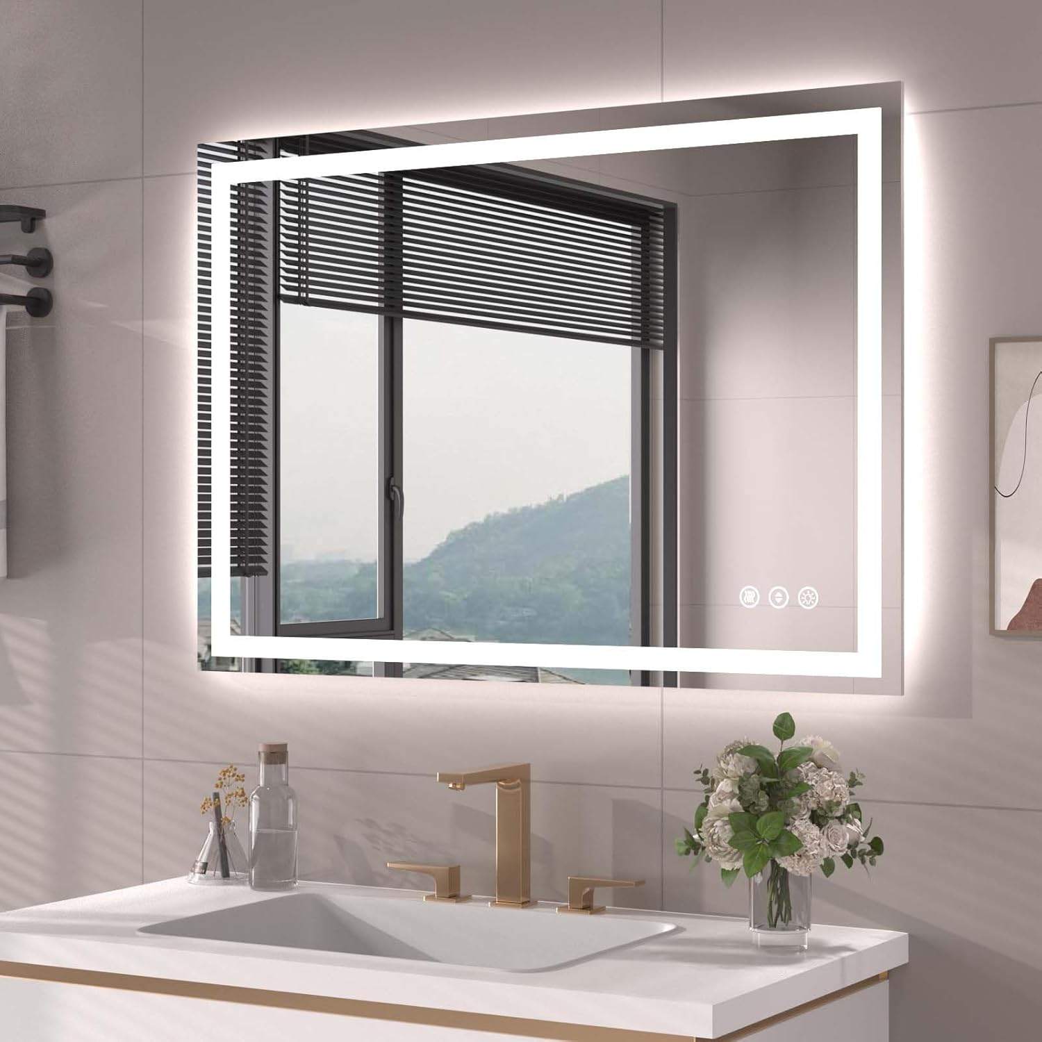 40"X28" LED Bathroom Mirror with Front Lights and Backlit, Anti-Fog, Dimmable, Shatter-Proof Tempered Glass, Lighted Bathroom Vanity Mirror for Wall with 3 Colors, Memory Function