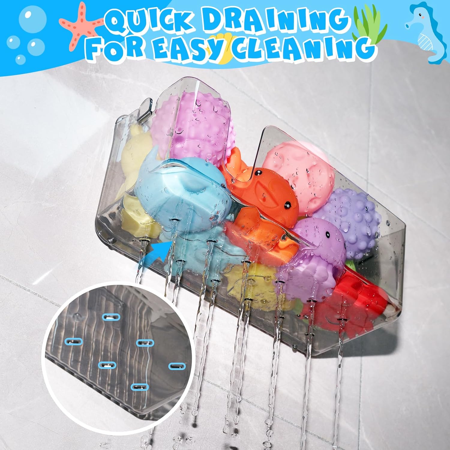 2-Pack Clear Bath Toy Storage Holder Organizer, Large Capacity Durable Plastic Bathtub Shower Caddy with Drain Holes, Quick-Dry Drainable Easy Install(Transparent Gray 2-Pack)