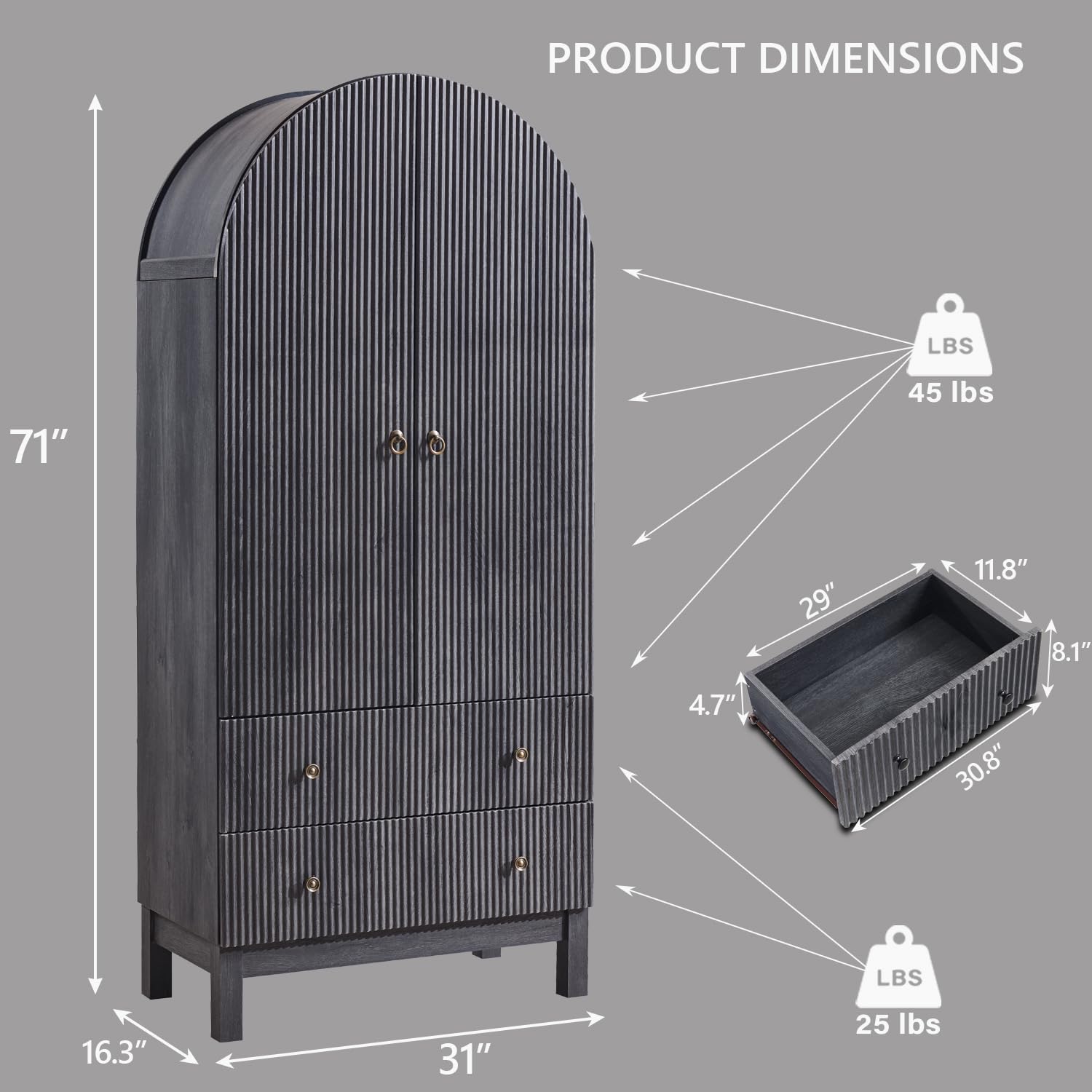 - Product Dimensions : 16.3"D x 31"W x 71"H