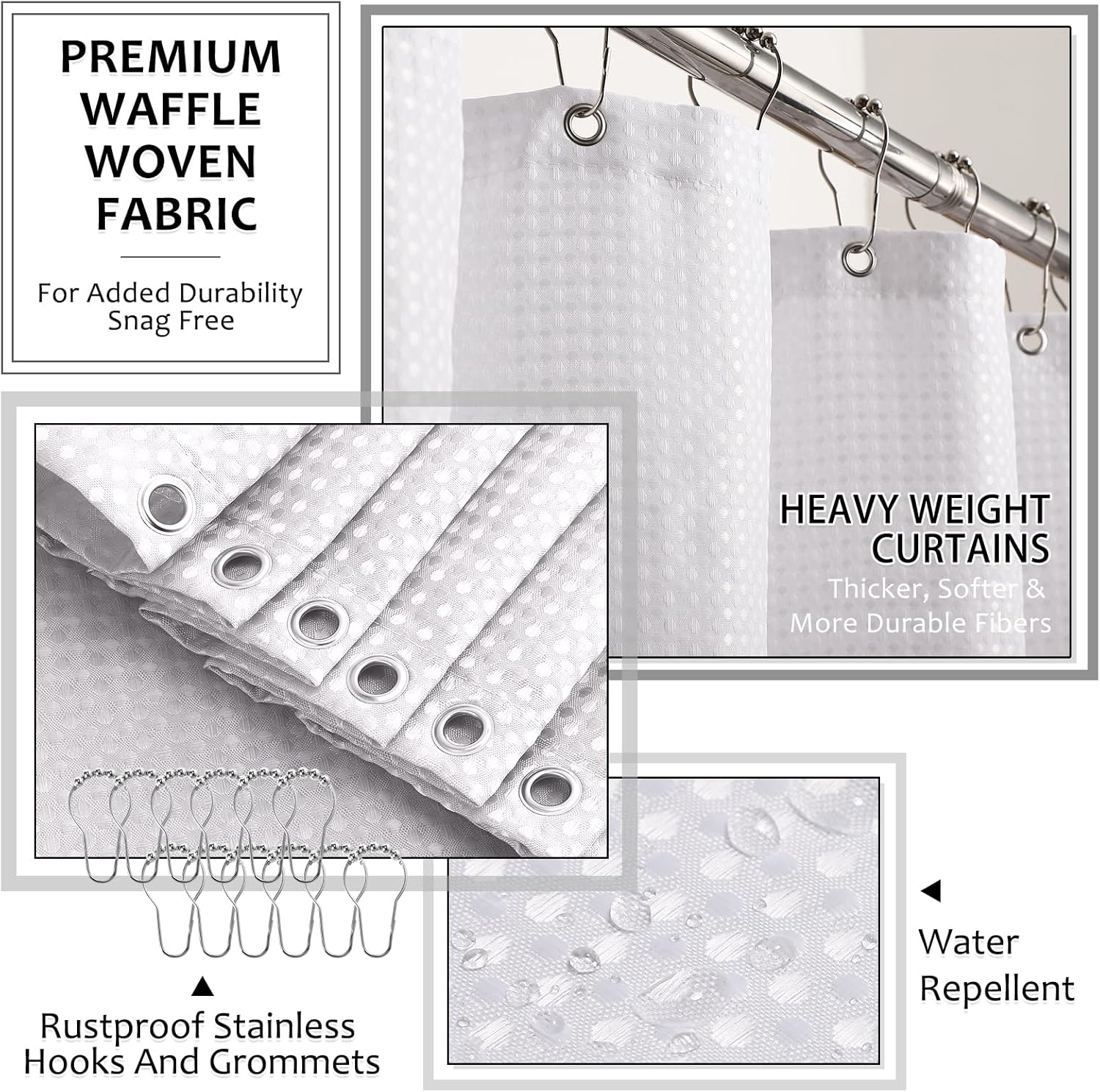 - 【8 Piece Bathroom Sets with Shower Curtain and Rugs】:Upgrade your space instantly with XLHOMO's complete 8-piece suite. This set includes: 1 x 12oz soap dispenser (fits any refill!), 1 x toothbrush holder, 1 x bathroom tumbler, 1 x cotton swab apothecary jar, 1 x multifunctional tray, 1 x wrinkle-resistant shower curtain, 2 non-slip bath mats* (19.6"x31.5" tub mat + 15.7"x23.6" sink rug). With this all-in-one set, you can effortlessly organize your toiletries and bath essentials, keeping your bathroom neat, tidy