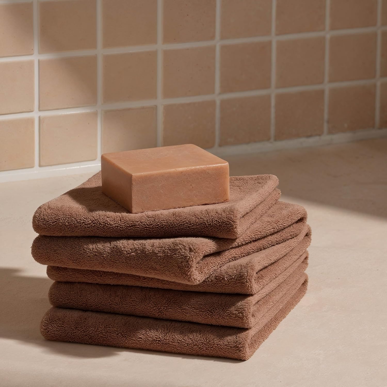 Italic Serene Ultraplush Cotton Washcloth Towel Set, 4-Pack, Clay, Soft Face Towels, 800GSM, 100% Cotton, Heavy Duty, Resort Grade Towels (Clay)