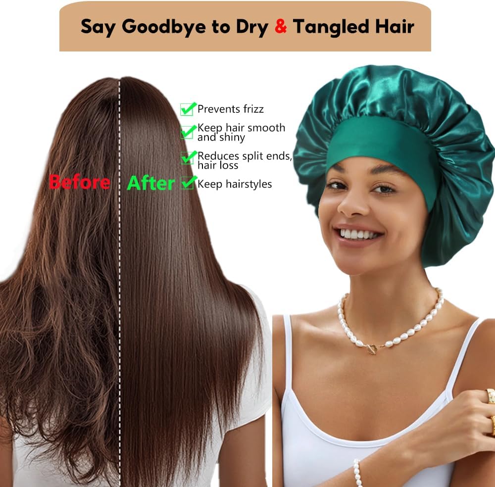 - 【Upgraded Premium Satin Fabric】- Our silky bonnets help protect hair from friction caused by cotton pillowcases, reducing frizz, tangles and breakage. The smooth satin fabric allows hair to retain moisture in the hair by preventing excessive drying out overnight, keep hair smooth, soft and healthy. Besides, it prevents hair loss, reduce split ends.