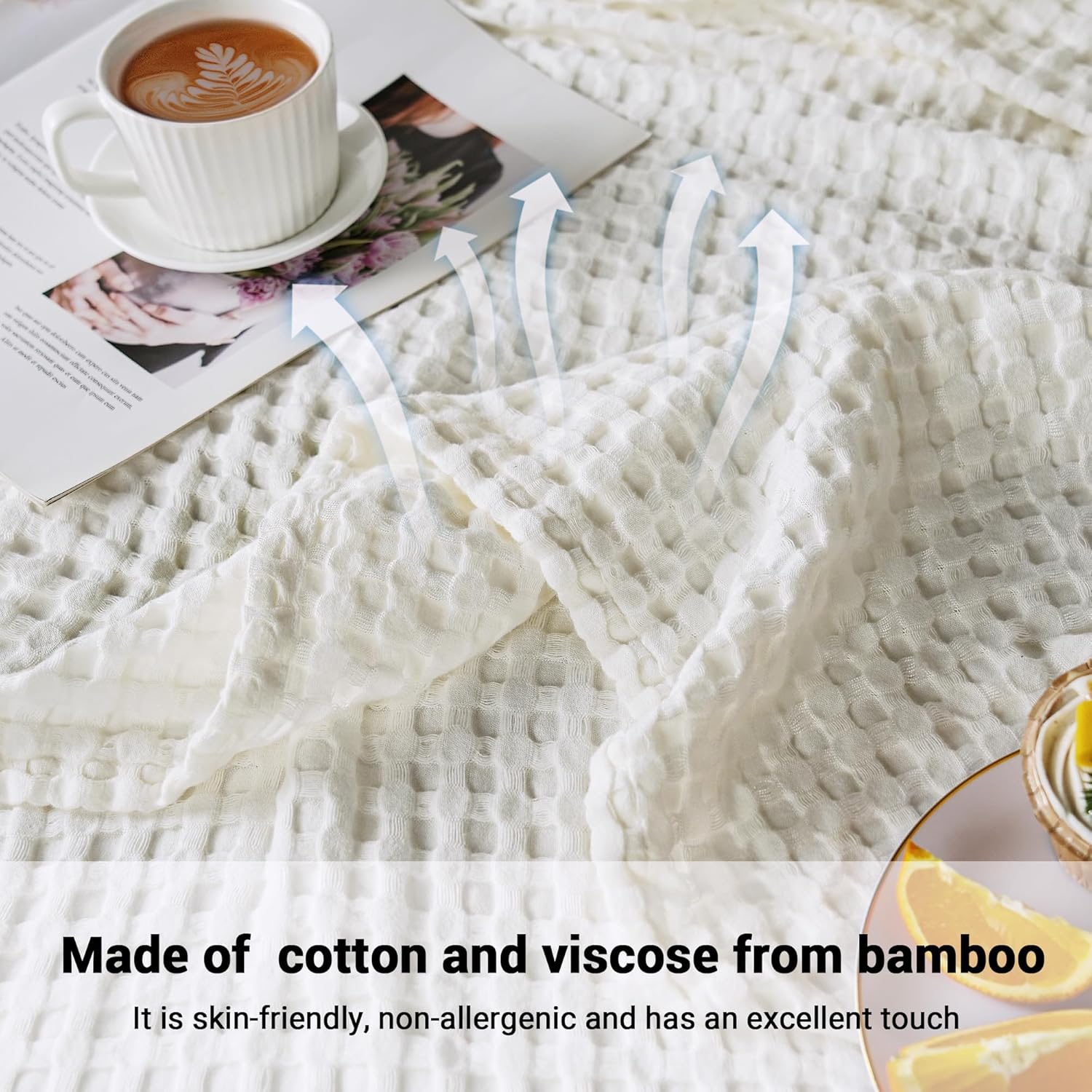 - Comfortable material- Made of 50% cotton and 50% Rayon Derived from Bamboo, this waffle blanket is very soft,highly breathable,Suitable for all people. The unique texture design enhances the airflow,making you comfortable without overheating.
