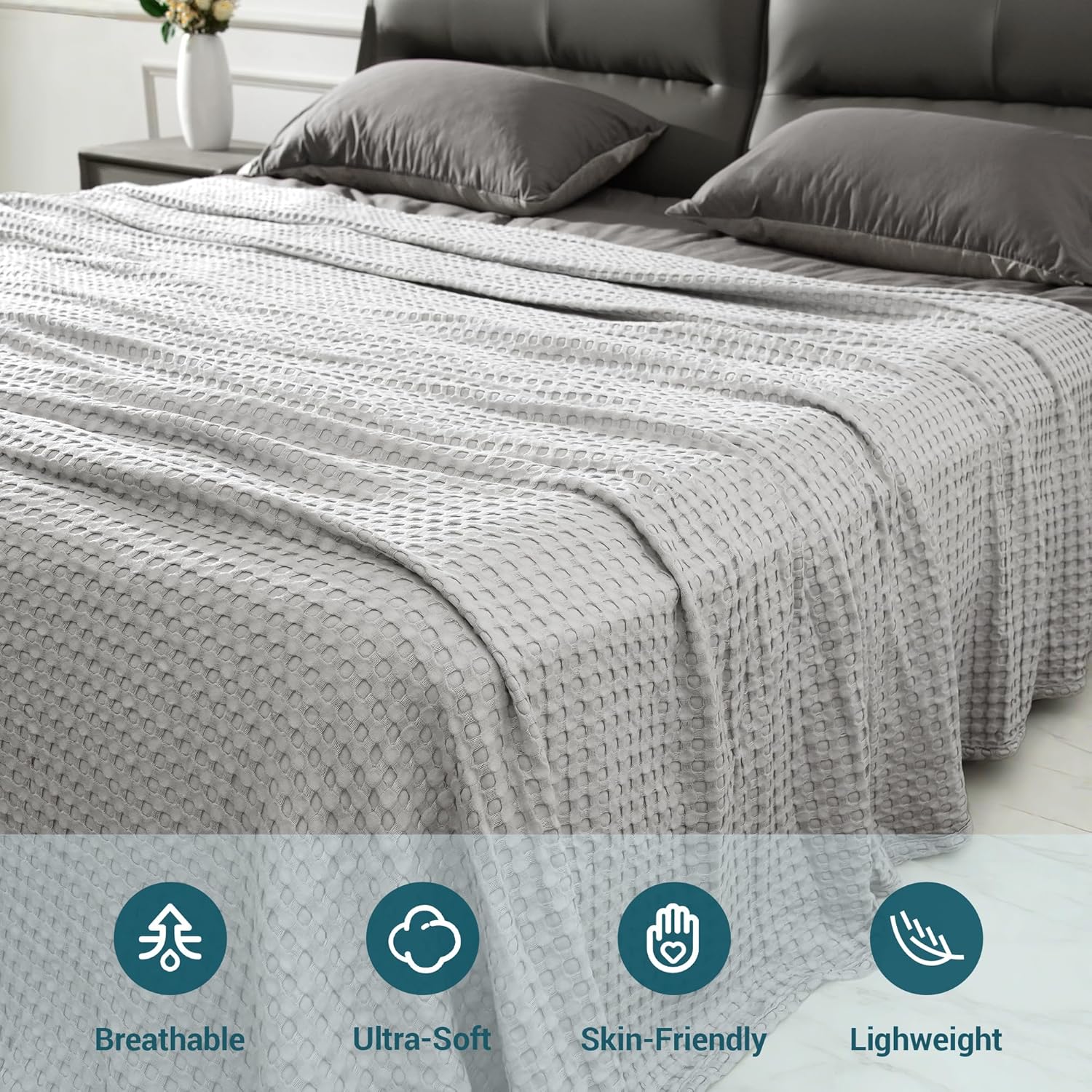 - Available in Multiple Sizes - Choose from Queen(90x90 inches),King(104x90 inches),Twin(66 x 90 inches),and Throw XL(50x70 inches) to perfectly fit your bed,couch,or favorite chair.Lightweight yet generously sized,our breathable waffle blanket provides year-round comfort.The compact design makes it easy to carry while traveling or moving between rooms