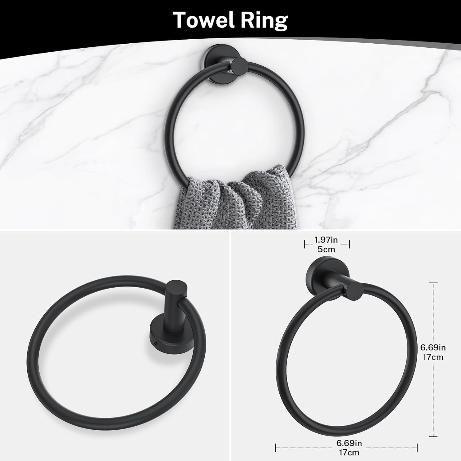 4-Piece Matte Black Bathroom Hardware Accessories Set,Black Towel Ring Set Toilet Paper Holder,Robe Hooks,Stainless Steel Wall Mounted Rustproof Modern Bathroom Set