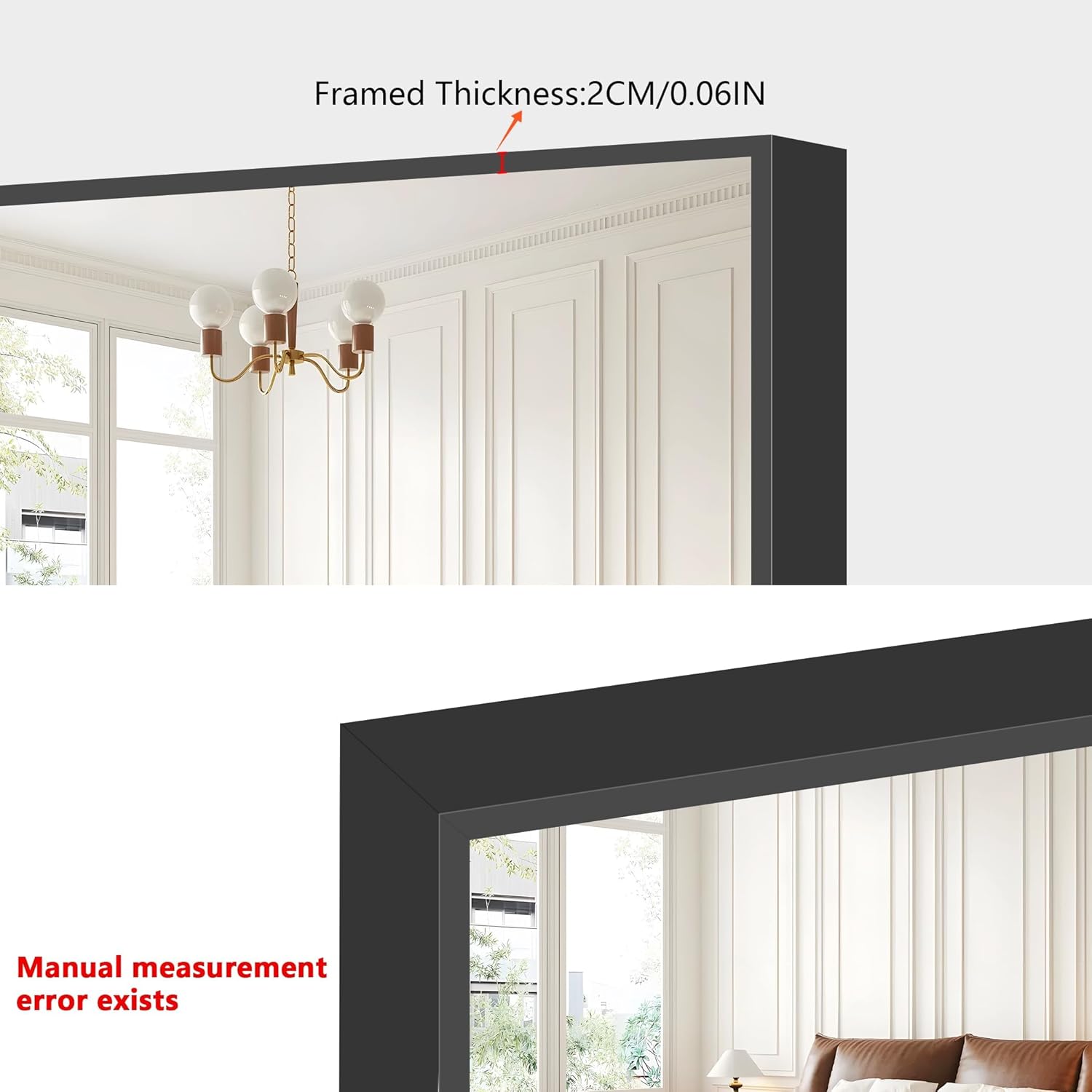 48x24In Black Bathroom Mirror for Wall, Rectangle Mirrors with Metal Frame, Bathroom Rectangular Mirror Modern Wall Mirror for Bedroom Living Room, Entryway Hangs Horizontal or Vertical