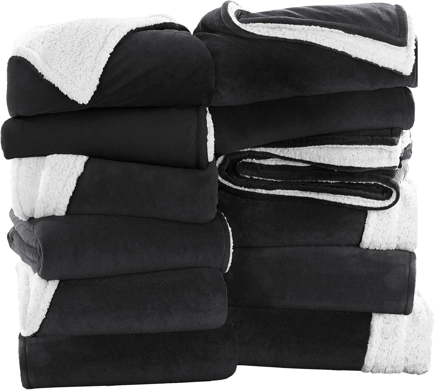 IR Imperial Rooms Black Sherpa Fleece Throw Blanket Twin Size for Bed - Wholesale Bulk Pack of 12 Sherpa Blankets - Soft Fluffy Throw Blankets for Hotels, Guest Bedroom, 60x80 Inches