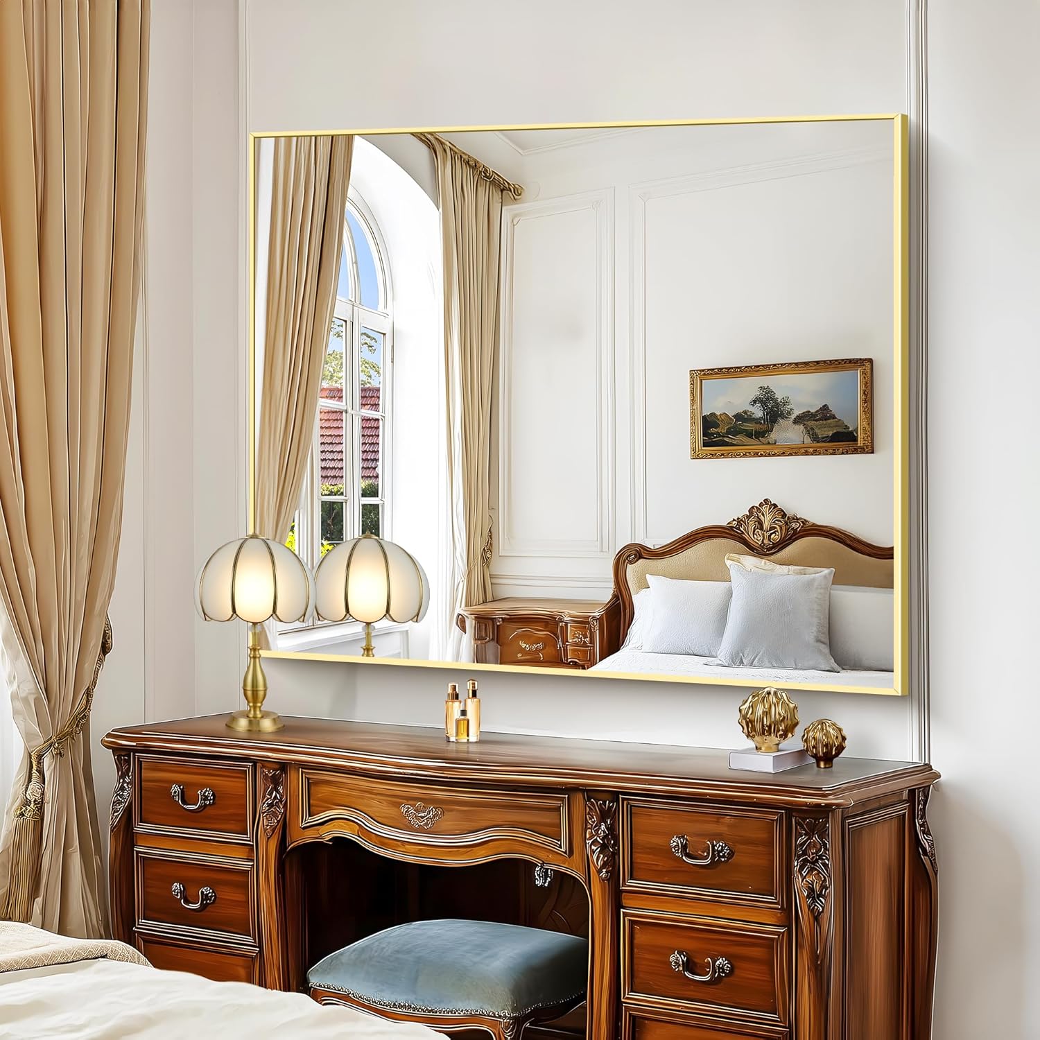 40x48inch Gold Bathroom Mirror, Silver Rectangle Mirror with Frame, Large Rectangular Wall Mirrors for Bathroom, Living Room, Hair Salon, Big Farmhouse Mirror Hang Horizontal/Vertical