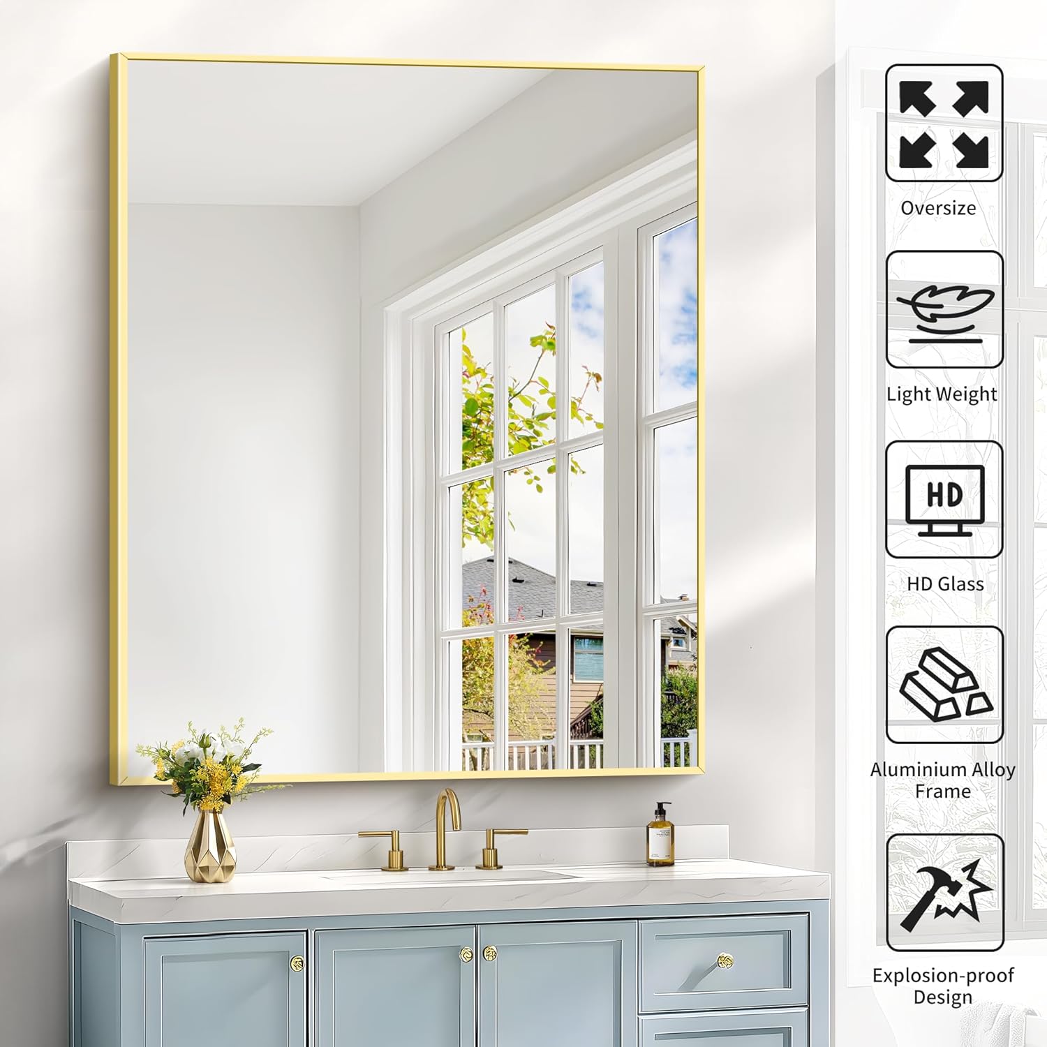 - SAFE USE: Gold bathroom Mirror safety backing strengthens the glass surface, making it less prone to breakage and falling off, you can use it with confidence, the mirror design is simple, and the universal size can adorn your room well.
