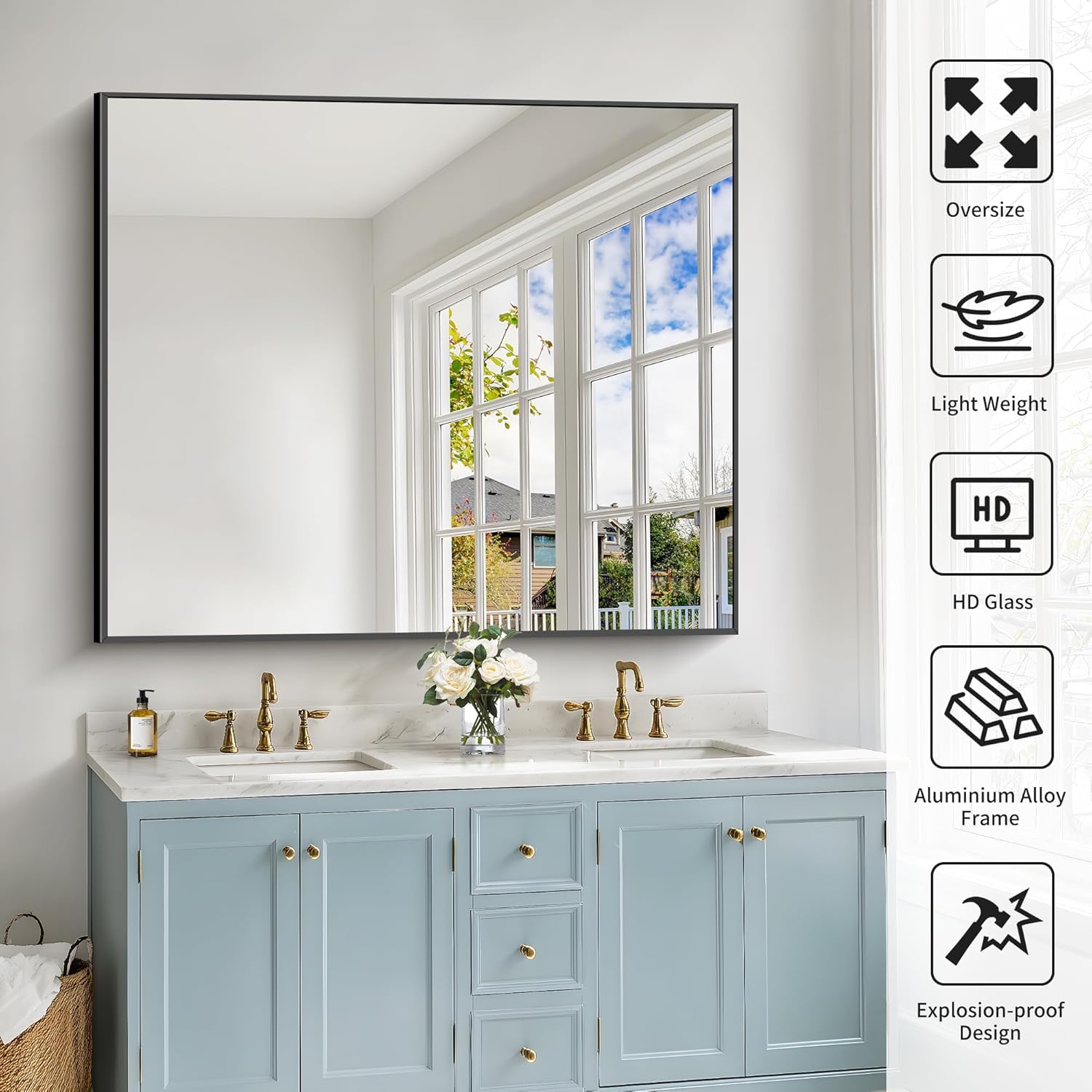 - SAFE USE: Black bathroom Mirror safety backing strengthens the glass surface, making it less prone to breakage and falling off, you can use it with confidence, the mirror design is simple, and the universal size can adorn your room well.