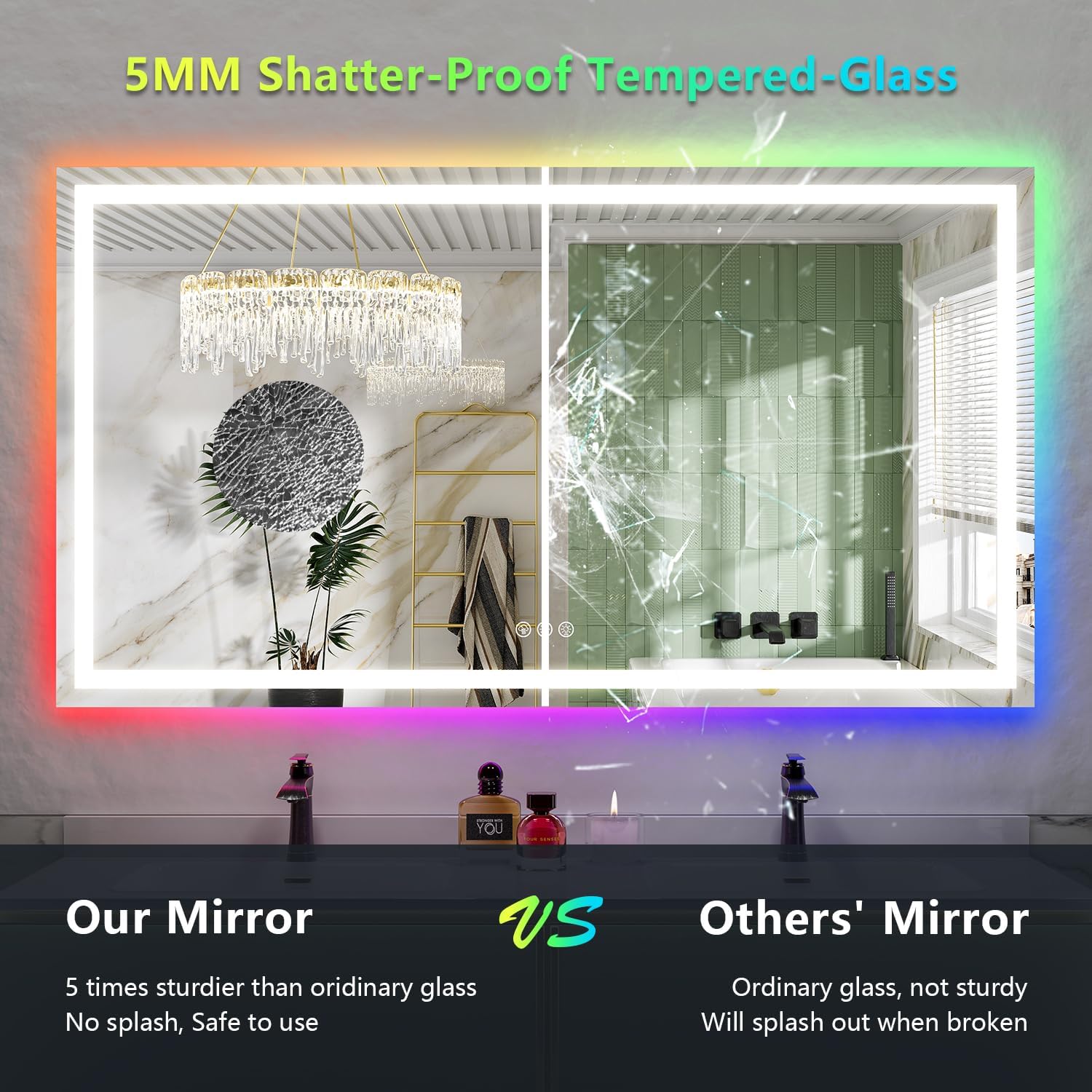 68x40 Inch RGB LED Bathroom Mirror Front Light and RGB Backlit Lighted Vanity Mirror for Bathroom Wall Mounted Dimmable Anti Fog Memory Shatter-Proof IP54 Waterproof Horizontal/Vertical