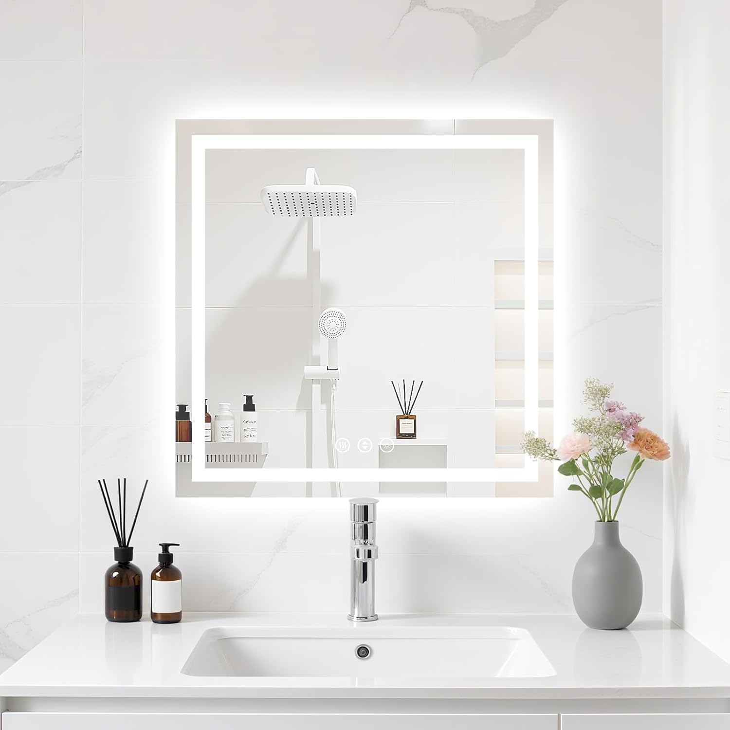 24X24 LED Bathroom Mirror with Lights, Anti-Fog, Backlit + Front Lit (CRI>90), Lighted Bathroom Vanity Mirror for Wall, Memory Function, Dimmable, Tempered Glass, Shatter-Proof, ETL Listed