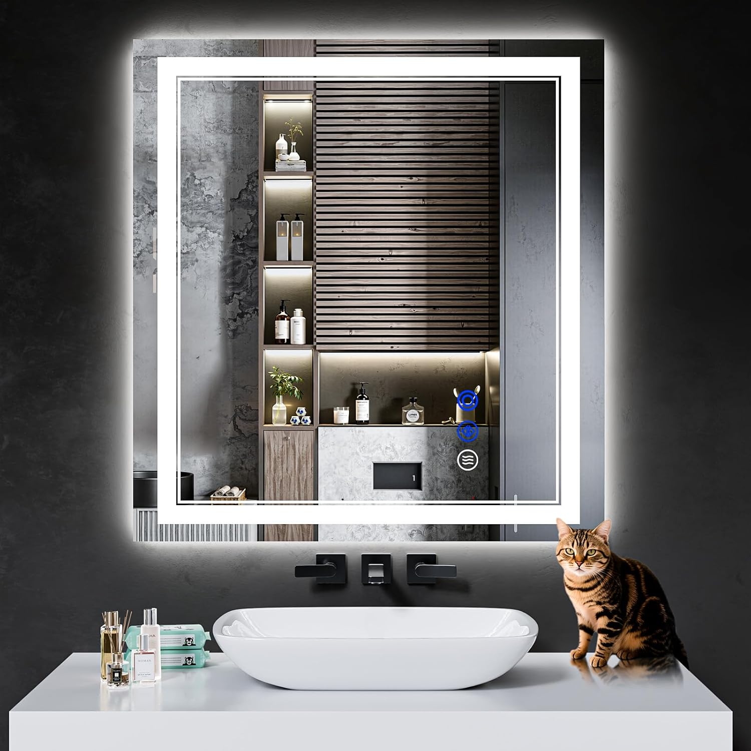 32"x30" LED Bathroom Mirror with Anti-Fog, Stepless Dimmable Lights, 3 Color Modes, Shatter-Proof Tempered Glass, Memory Function & Waterproof Design