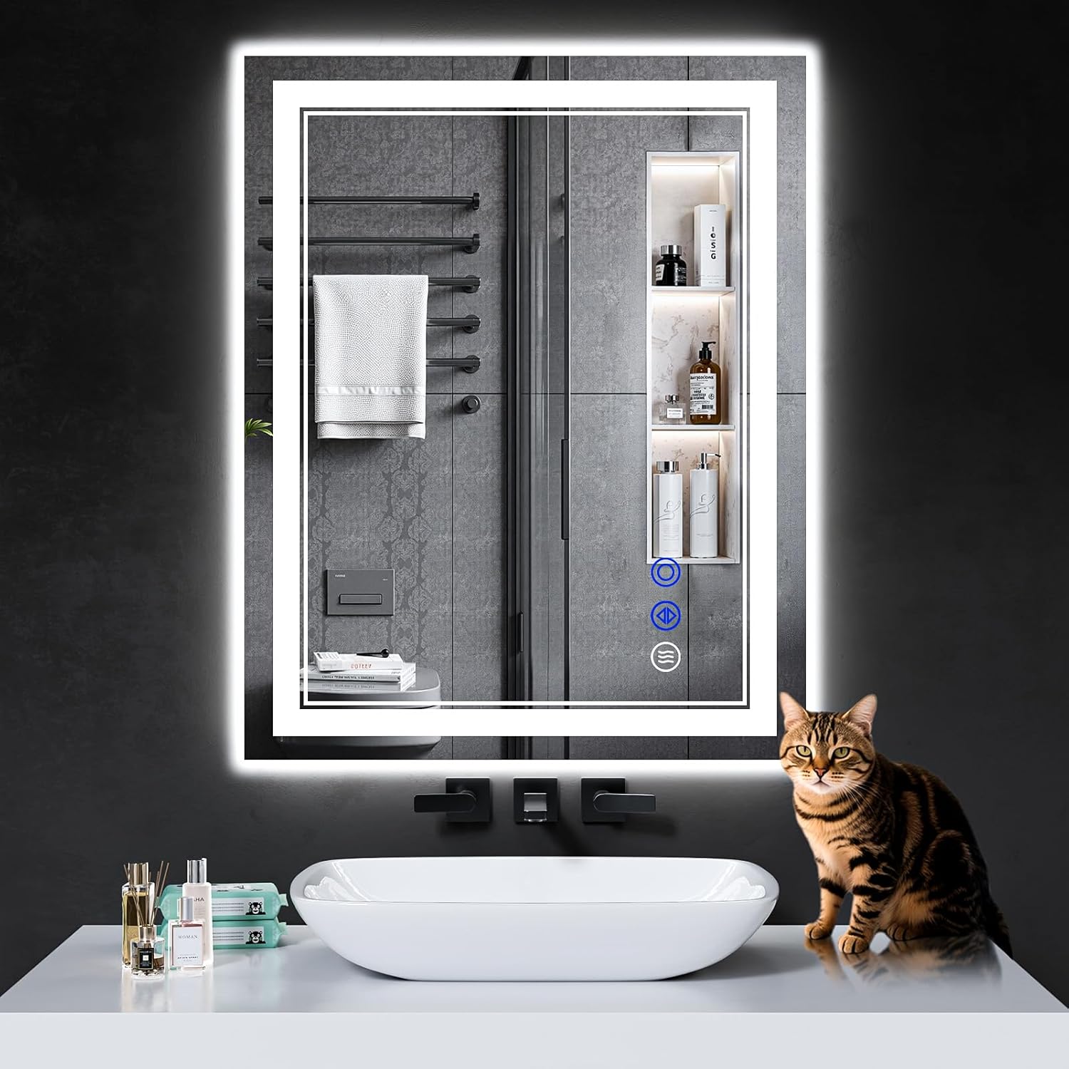 30"x24" LED Bathroom Mirror with Anti-Fog, Stepless Dimmable Lights, 3 Color Modes, Shatter-Proof Tempered Glass, Memory Function & Waterproof Design