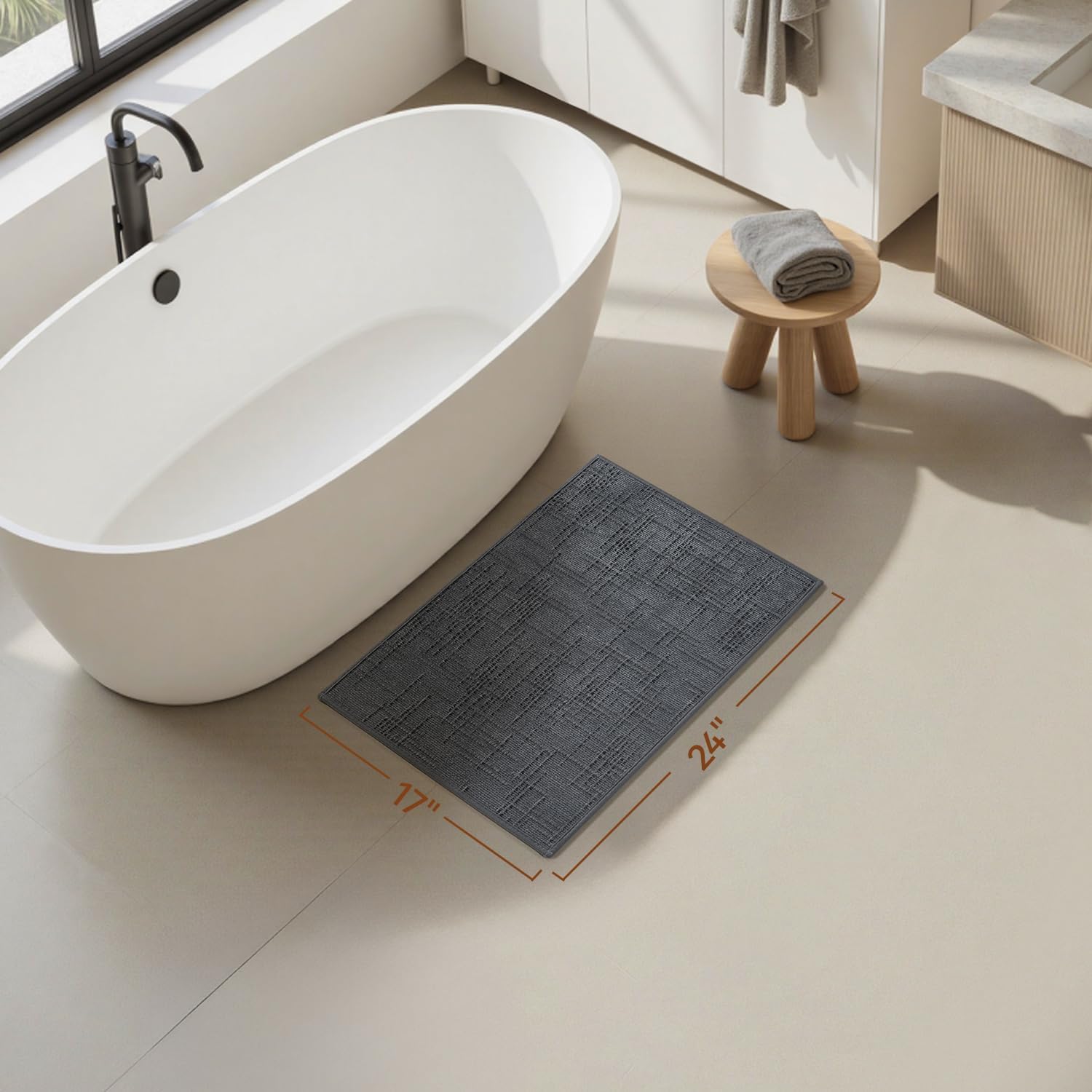 AMOAMI Bath Mat Non Slip Super Absorbent Quick Dry Bath Mats for Bathroom Floor Rubber Backing Washable Bathroom Rugs Modern Woven Jacquard Mat, Beside Tub Bath Rugs, 17" x 24", Darkgrey