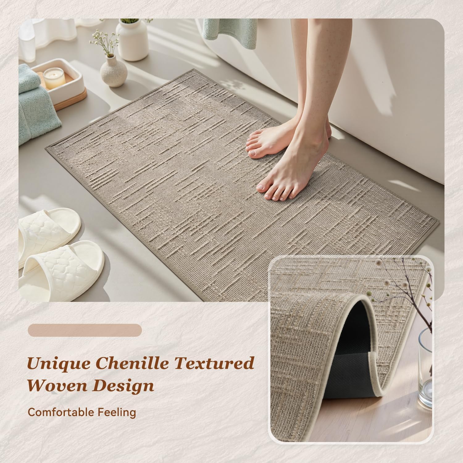 AMOAMI Bath Mat Non Slip Super Absorbent Quick Dry Bath Mats for Bathroom Floor Rubber Backing Washable Bathroom Rugs Modern Woven Jacquard Mat, Beside Tub Bath Rugs, 17" x 24", Brown