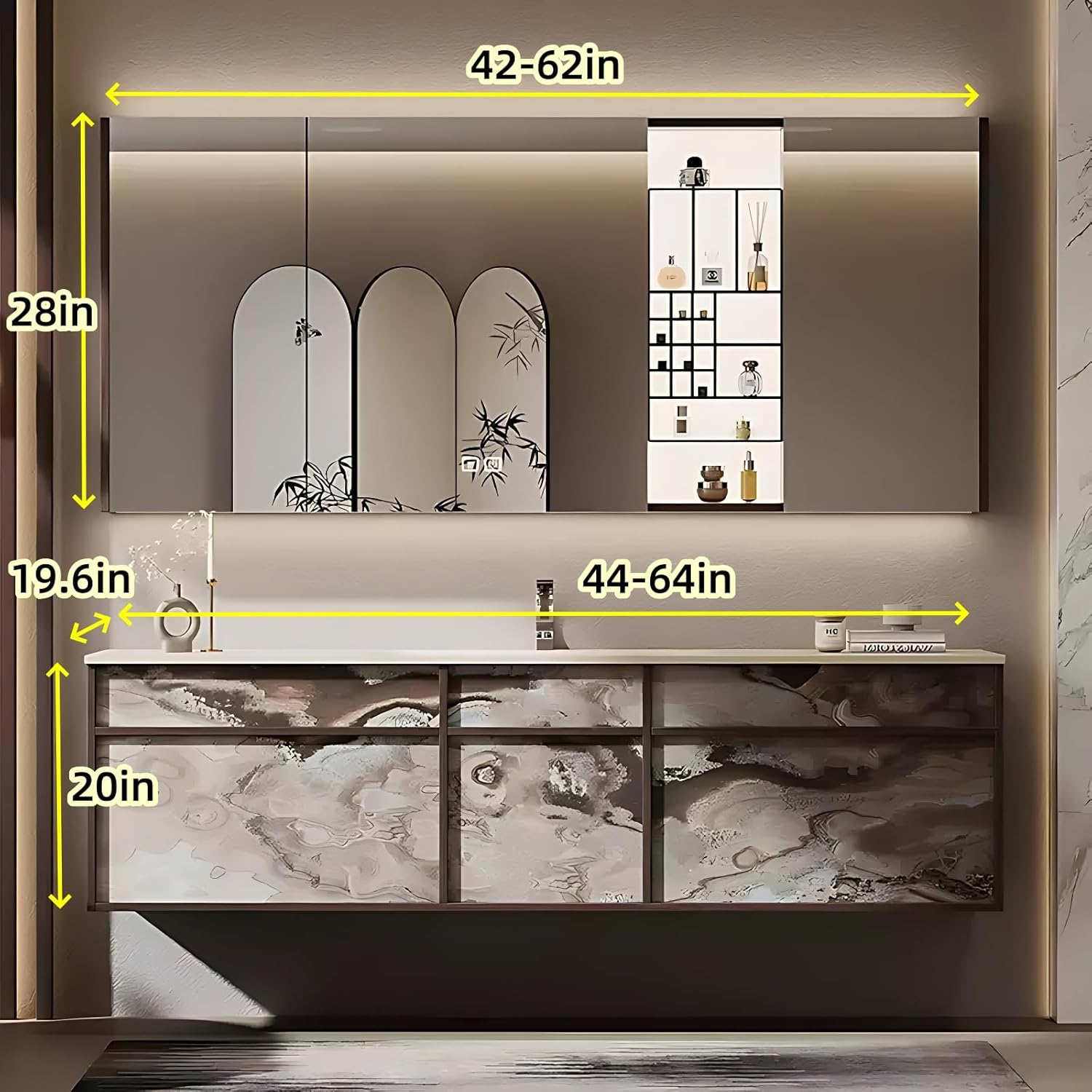 64in Bathroom Vanities Set - Bathroom Vanity with Sink, Tall Storage, Smart Defogging Mirror, Integrated Sink & 2 Large Drawer | Floating Cabinet