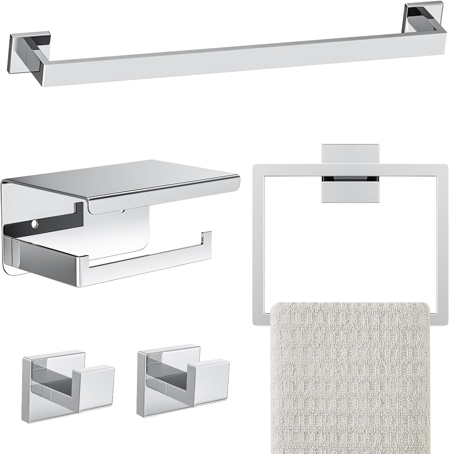 5-Pieces Polished Chrome Bathroom Hardware Accessories Set,16 Inch Towel Bar Set,Stainless Steel Towel Holder Set for Bathroom,Wall Mounted Chrome Bathroom Hardwar Set