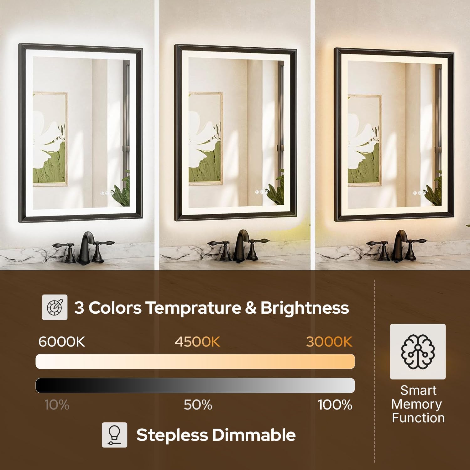 - Customizable Temperature and Lighting Modes: Adjust the lighting to fit your needs with a simple touch, choosing from Warm Light (3000K), Neutral Light (4500K), or Cool White (6000K). The stepless dimming feature allows you to fine-tune the brightness and temperature for the perfect ambiance, providing both ideal lighting and a personalized experience.