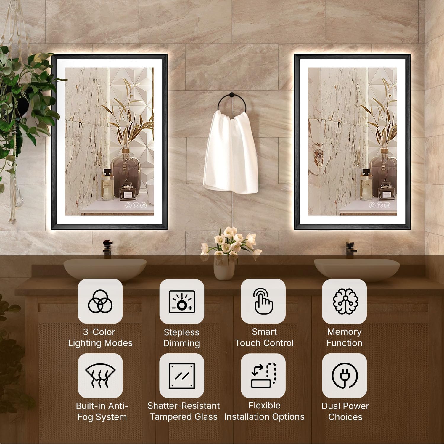 - Ultra-Clear, Shatterproof Tempered Glass with Anti-Fog: Enjoy HD, distortion-free reflection with safety-rated tempered construction that resists impacts and thermal shock. The built-in anti-fog feature ensures your mirror stays clear in humid bathrooms, delivering long-lasting durability. Perfect for a LED mirror setup, it provides a premium, safe finish for busy homes and high-traffic spaces.