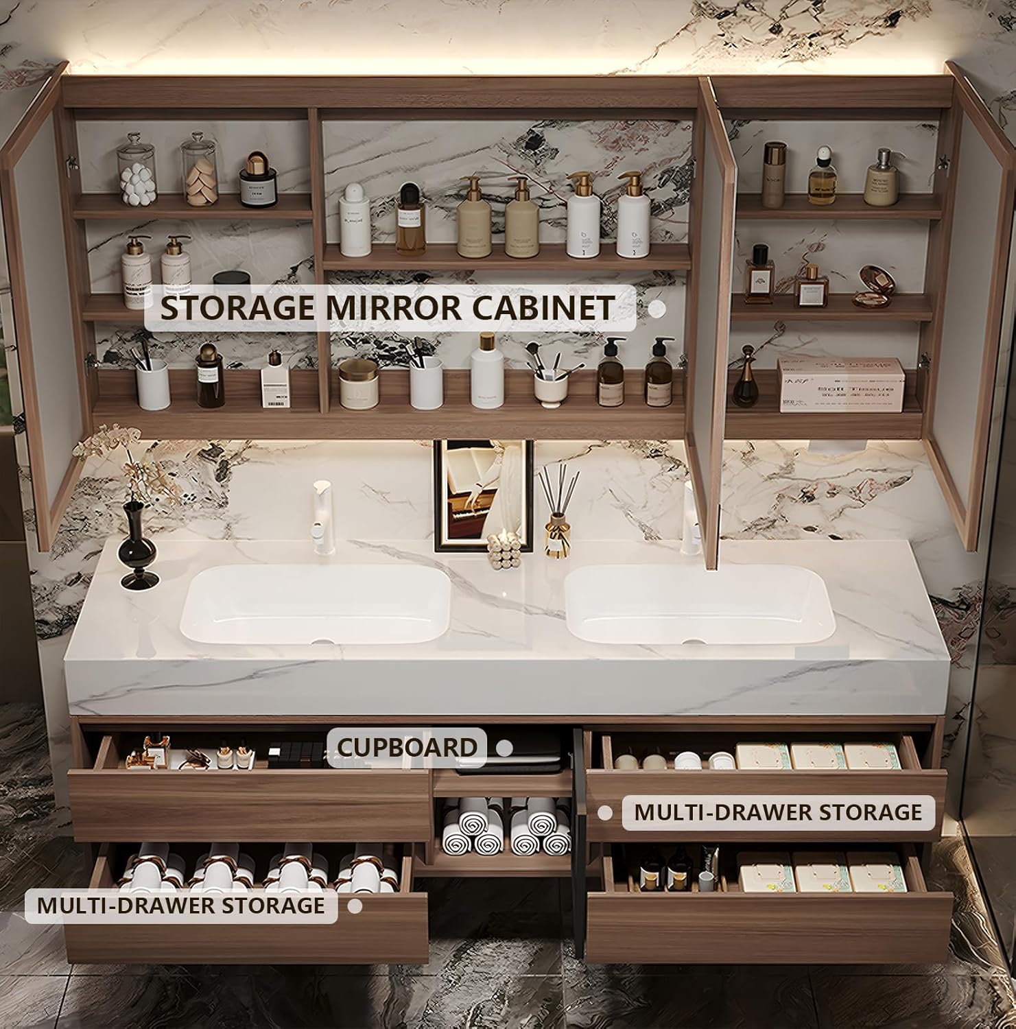 - ⭐Multi-Functional Storage Space: There are 4 drawers under the bathroom sink cabinet, which are large in capacity, smooth and durable, making it easy to categorize and store personal care products and sundries.