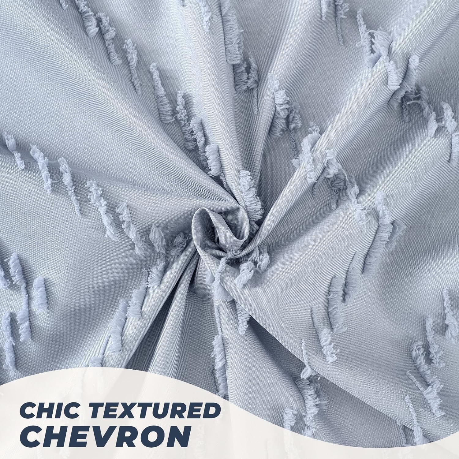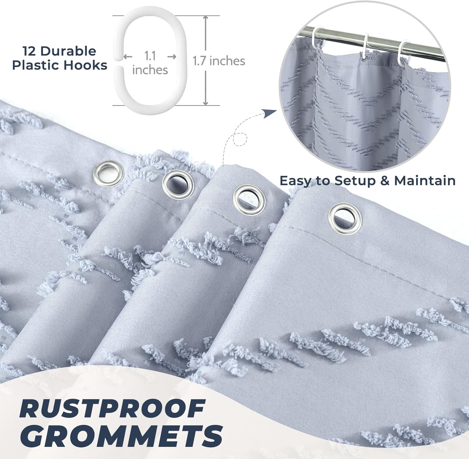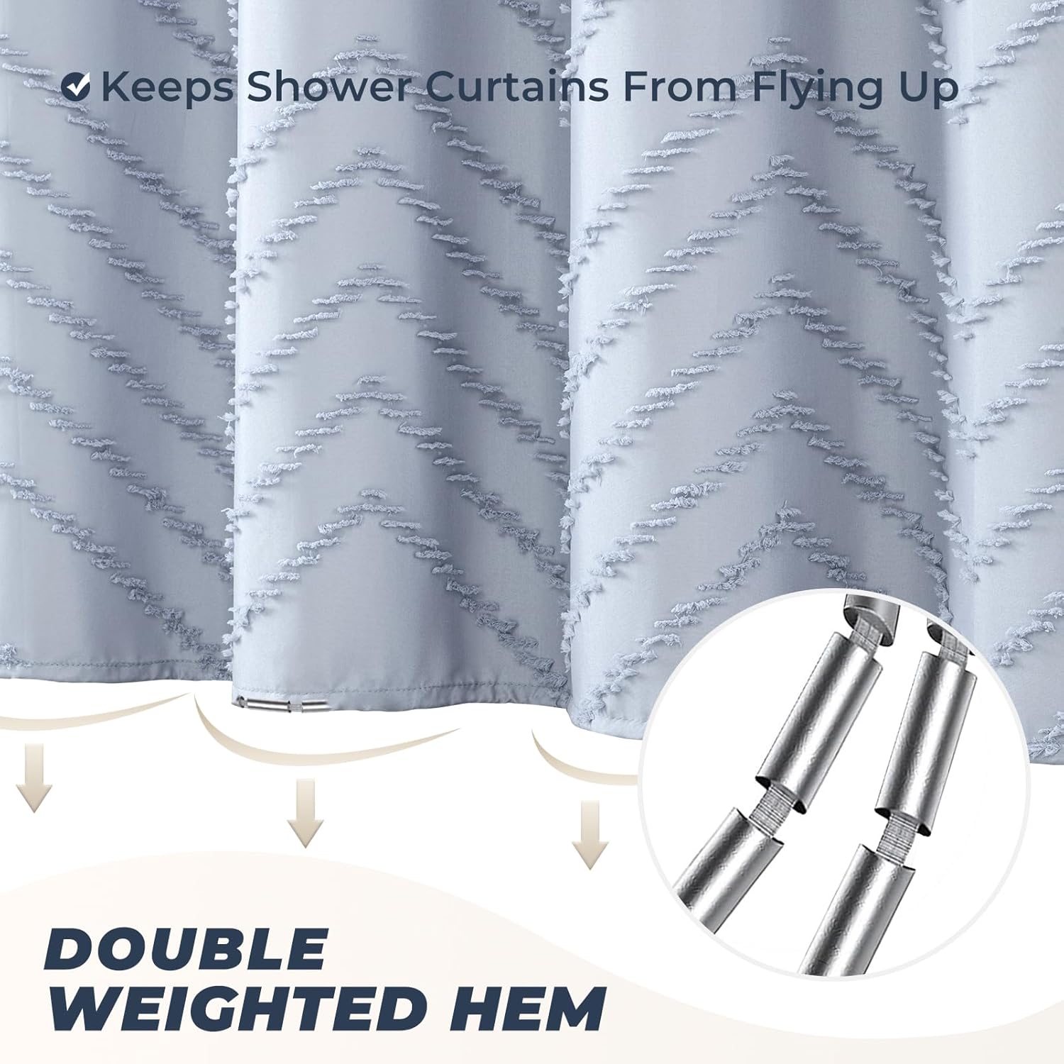 78inches Long Light Blue Boho Fabric Shower Curtain Tufted Chevron Striped Textured Cloth Curtains for Bathroom, Fog Blue