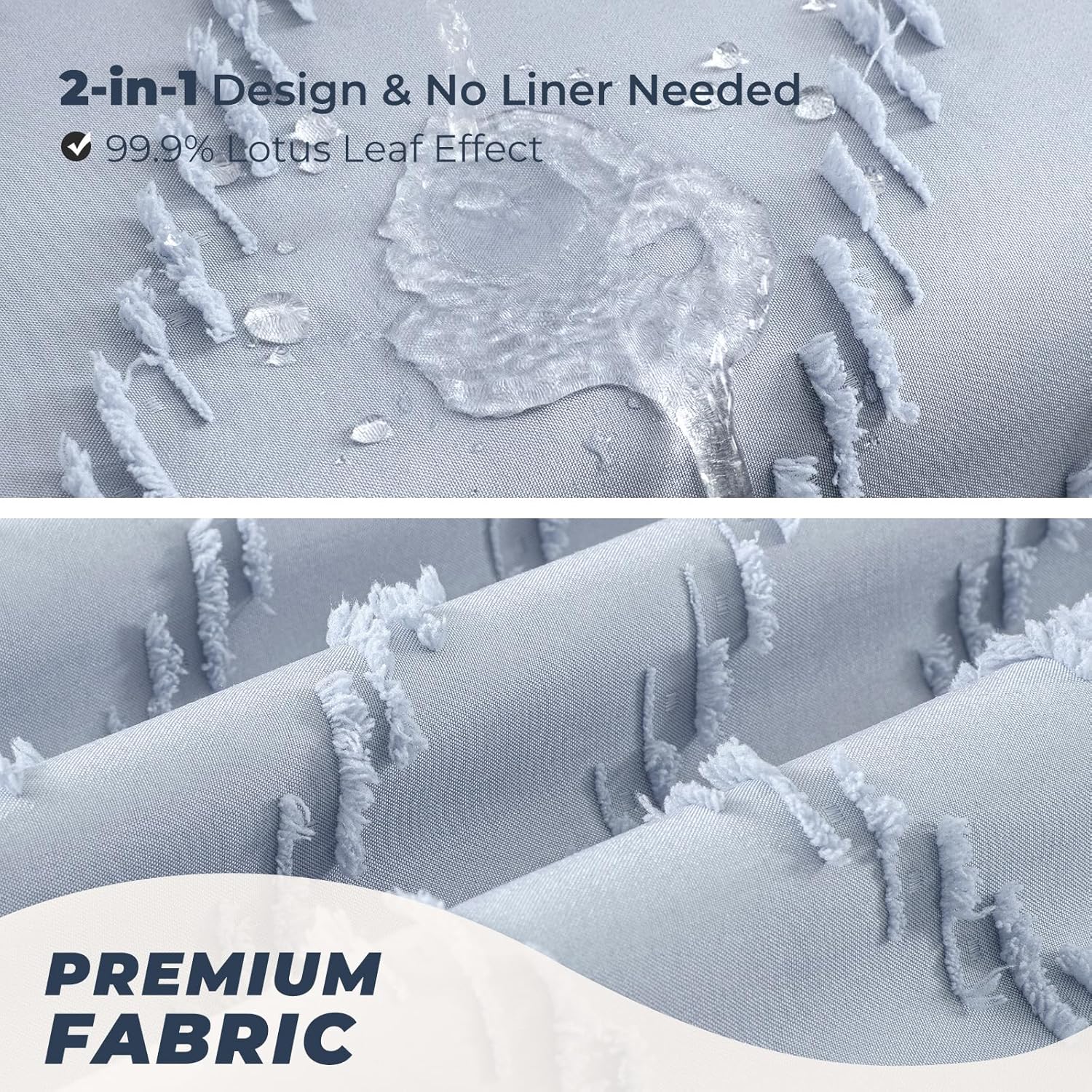 - 【Durable & Waterproof Light Blue Shower Curtain – Liner-Free】Made from high-quality waterproof fabric, this light blue shower curtain is built for durability and daily use. It's quick-drying, heavy-duty, and offers full privacy without needing an extra liner—delivering a seamless blend of function and style.