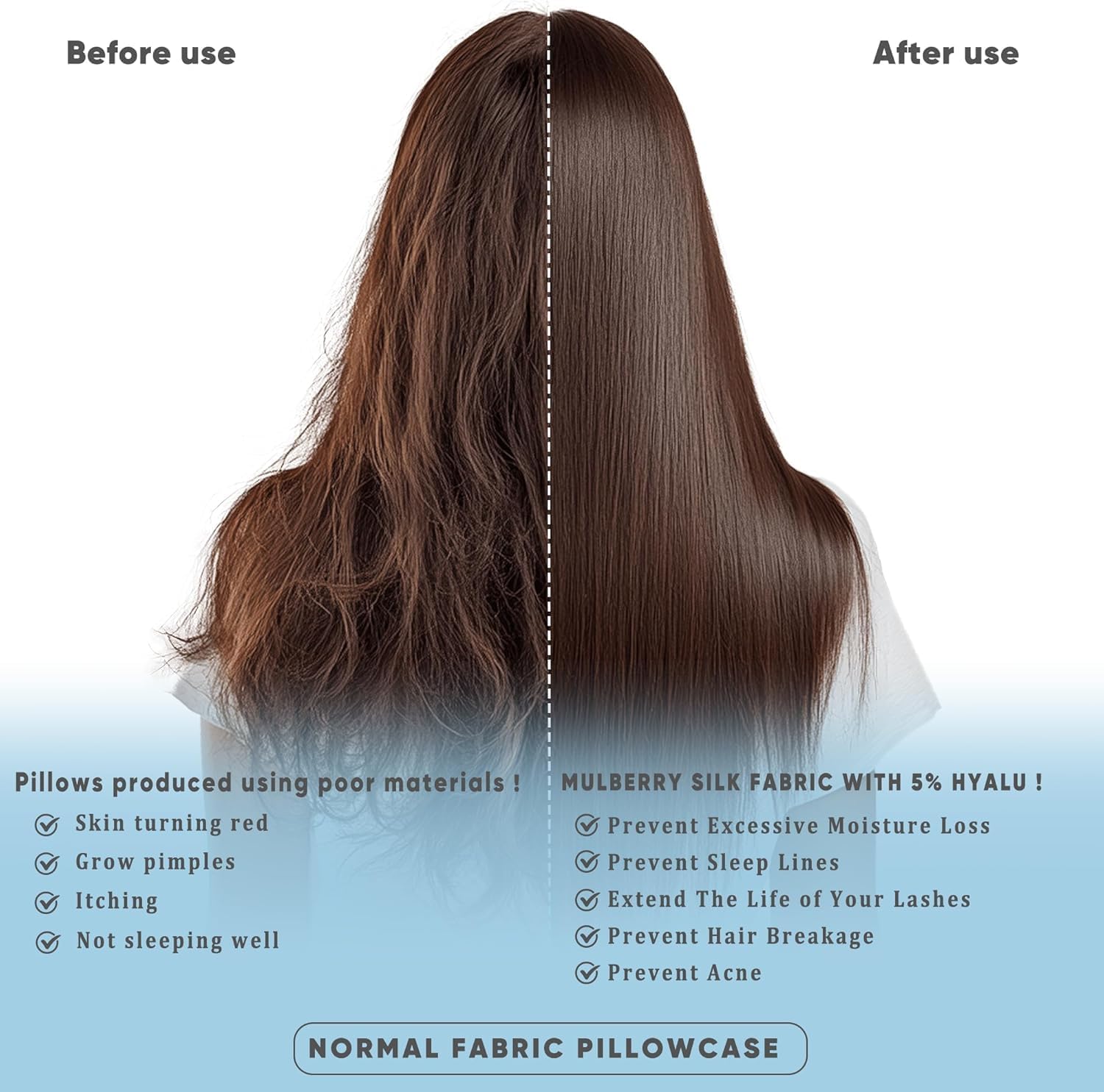 - Beauty Benefits for Hair & Skin: Ordinary pillowcases can cause hair tangling and skin irritation overnight. Our silk pillowcase helps reduce pulling, tugging, and pressure, offering gentle care for both hair and skin. Ideal for sensitive skin, it helps minimize morning lines, wrinkles, and acne. The anti-static and friction-free properties of silk make it perfect for curly hair, preventing bedhead, hair breakage, and even hair loss