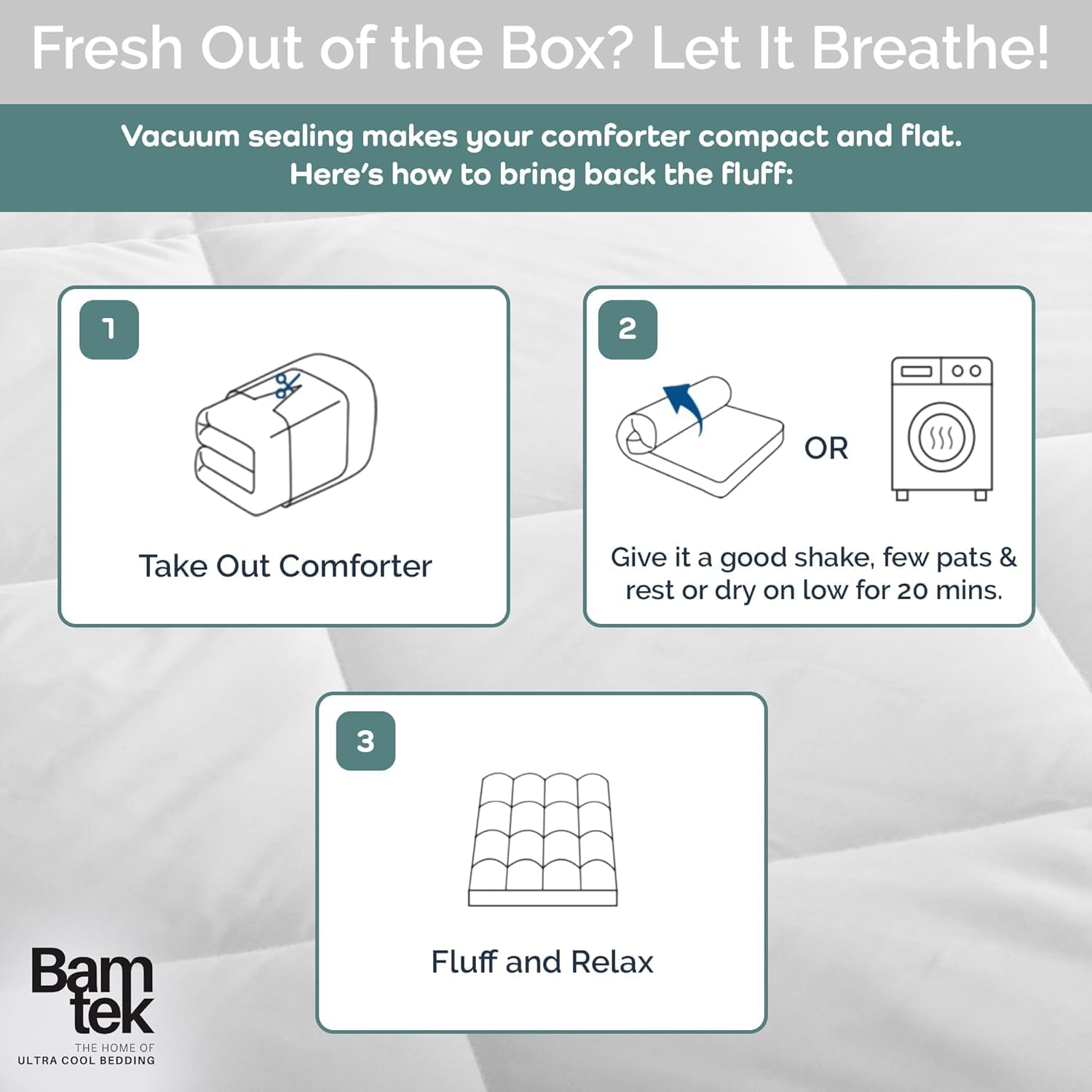 - You Wake Up Sweaty & Uncomfortable? Not Anymore! – If you’re constantly tossing and turning, drenched in sweat, Bamtek's 100% Viscose derived from bamboo cooling comforter is exactly what you need. Designed to regulate your temperature and wick away moisture to keep you cool and fresh.