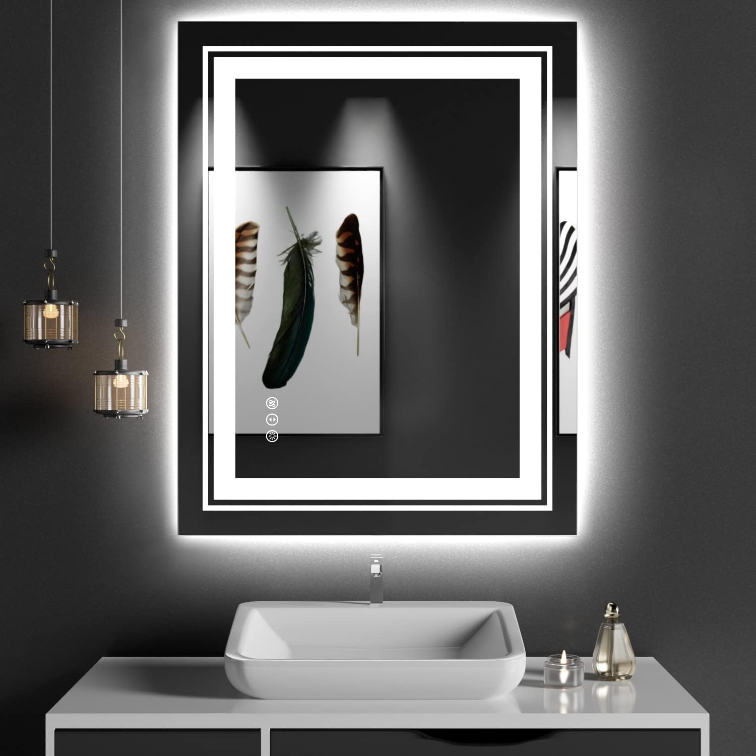 27x35 LED Bathroom Mirror with Front and Backlight, Dimmable Lighted Bathroom Vanity Mirror with Anti-Fog, Memory Function,Tempered Glass(Horizontal/Vertical)