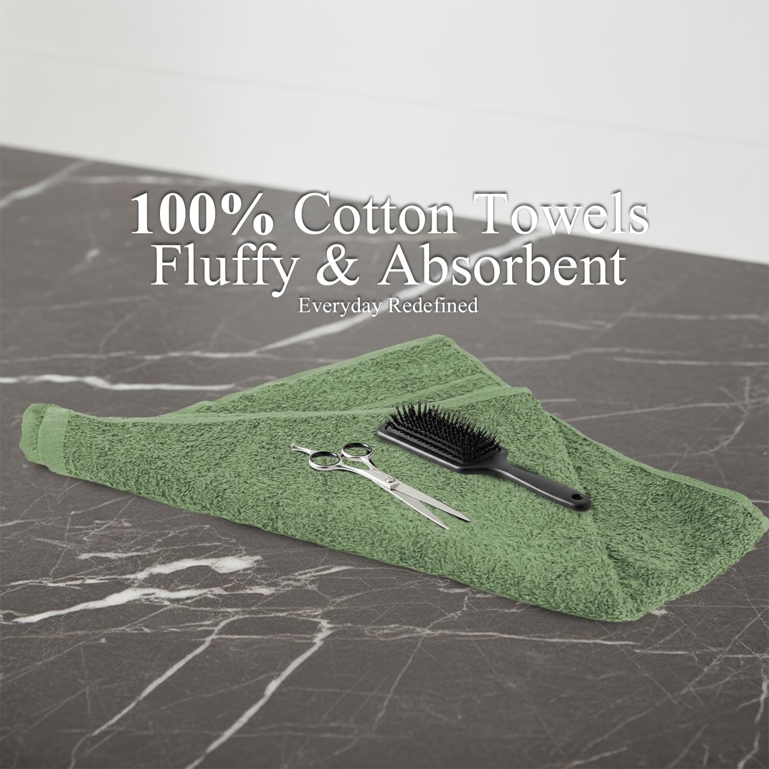 24 Pack Green Hand Towel 100% Cotton Spa Towel – 16x26 inches Highly Absorbable Facial Towels Gym, Hair Towel and Face Towel Bulk Small Towels (Not Bleach Proof)
