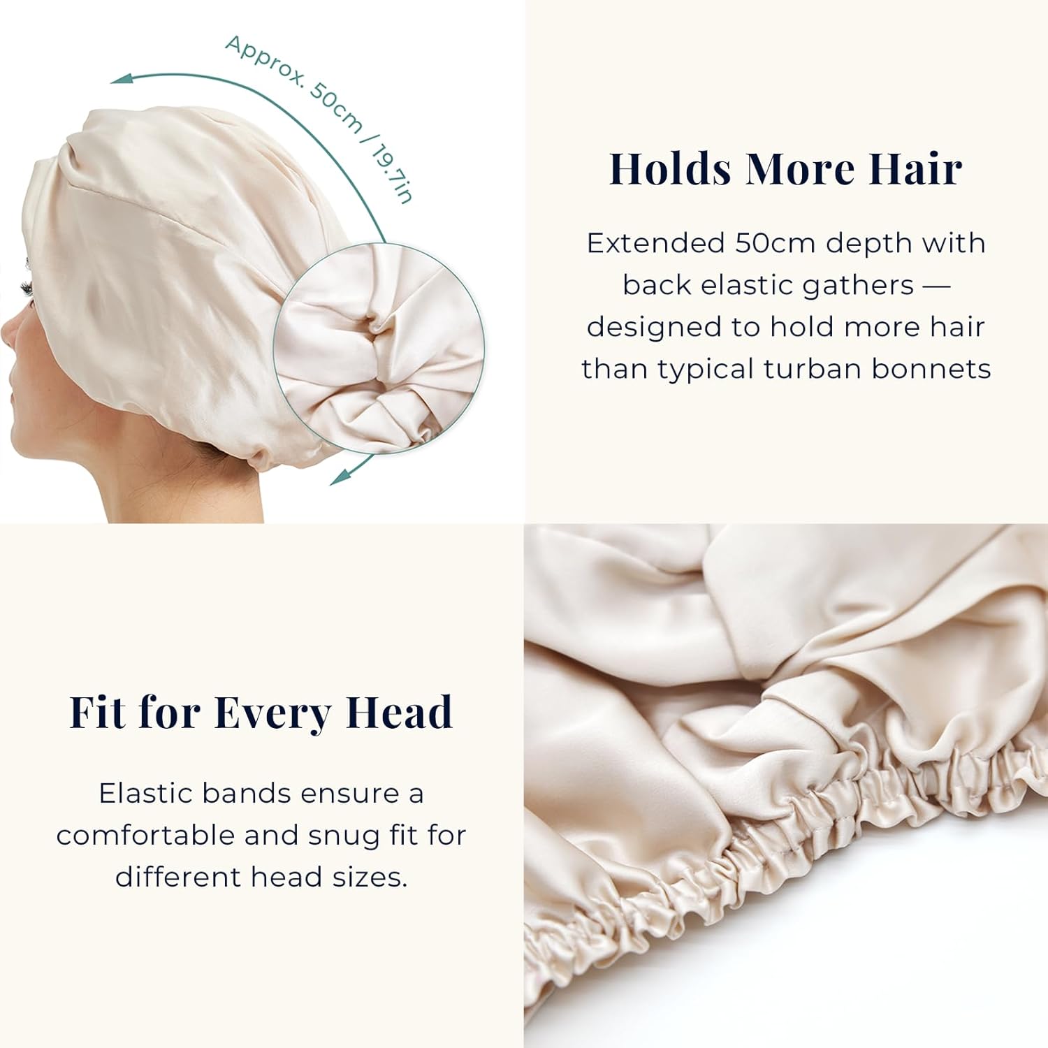 • Protects Hair Health: Real silk locks in moisture and reduces friction. Perfect as a silk sleep bonnet or daily hair wrap to keep hair shiny and smooth. Fits head sizes 20–23 in (51–58 cm).