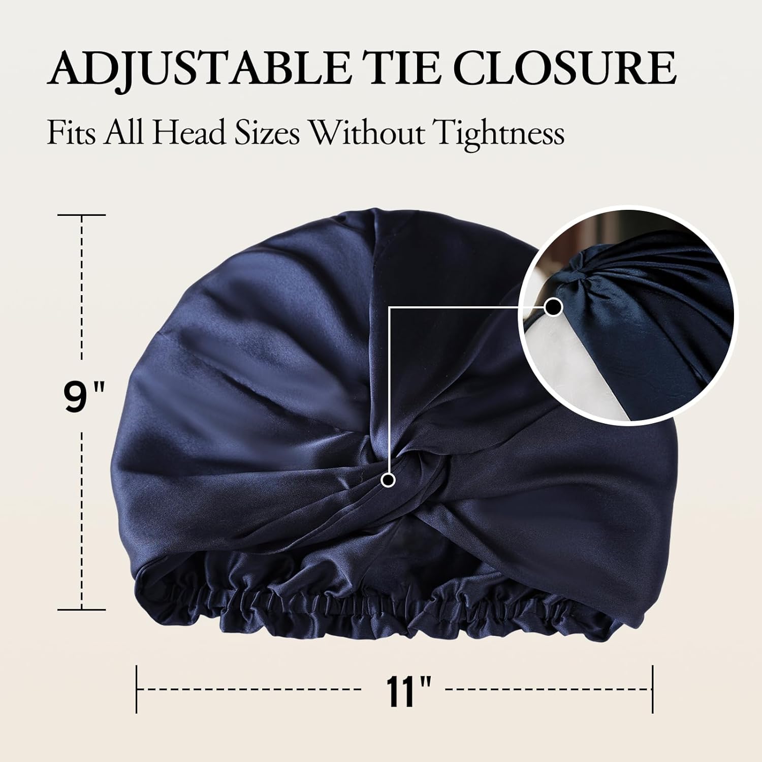 100% Mulberry Silk Bonnet for Sleeping, Adjustable Tie Closure for Women, Breathable Hair Wrap for Hair Protection