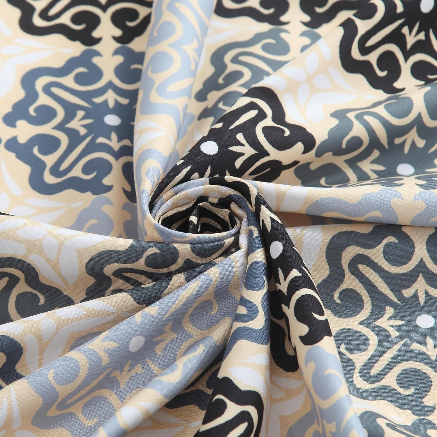 - EASY CARE: Our 72 x 90 inch black beige gray medallion shower curtain is machine washable in cold water; Gentle cycle; Do not bleach; Tumble dry low; Iron low for better results