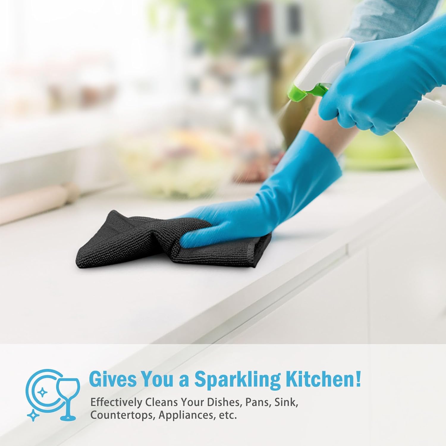 - Long-Lasting and Machine Washable: These cleaning towels are quick-drying and easy to wash; Save time and energy; Machine-washable and can be used wet or dry; Reusable hundreds of times without losing effectiveness; Remain soft and absorbent for cleaning kitchen and bathroom surfaces, glass, electronics, and automotive detailing